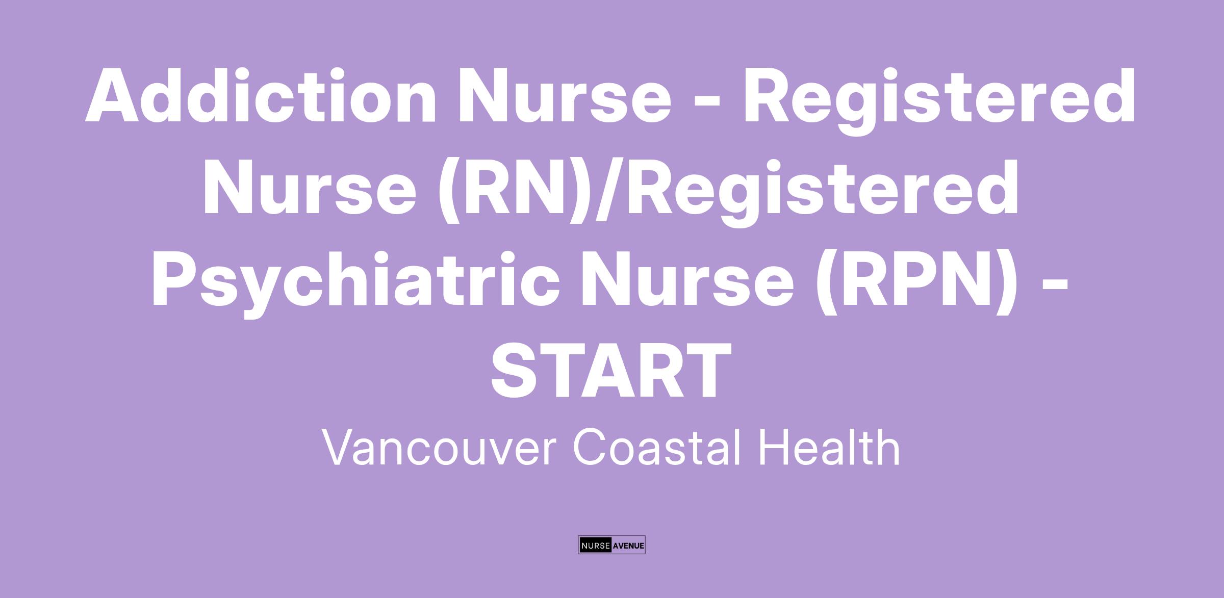 Vancouver Coastal Health is looking for a Registered Nurse OR Registered Psychiatric Nurse to join the Substance Use Treatment and Response Team (START) in Vancouver, BC as an Addiction Nurse. Apply today to join our team!