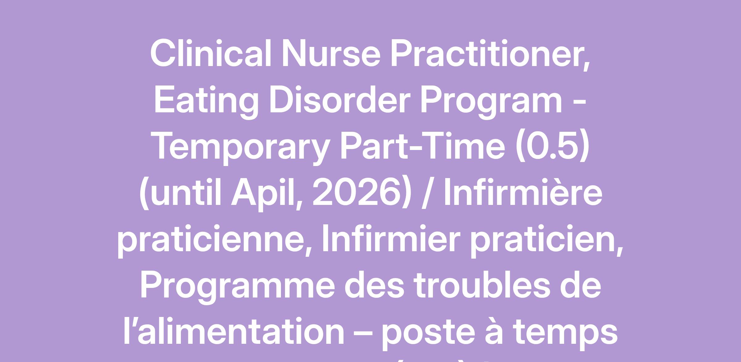 This position provides ongoing health care monitoring and provision of primary health care to clients receiving intensive treatment through the Eating Disorder Program at CHEO. Working collaboratively with other members of the Eating Disorders Team, the Nurse Practitioner will have a lead role in working with community and provincial partners to facilitate referrals/assessments to all levels of the program. Together with other members of the Eating Disorders Team, the Nurse Practitioner will participate in the clinical assessment and collaborative medical management of youth with eating disorders. . In addition to their key role in providing expert nursing care to patients and families, they will also have expertise in consultation, collaborative practice models, leadership, education, research, evidence based practice, coordination and standardization of care, and knowledge transfer.
