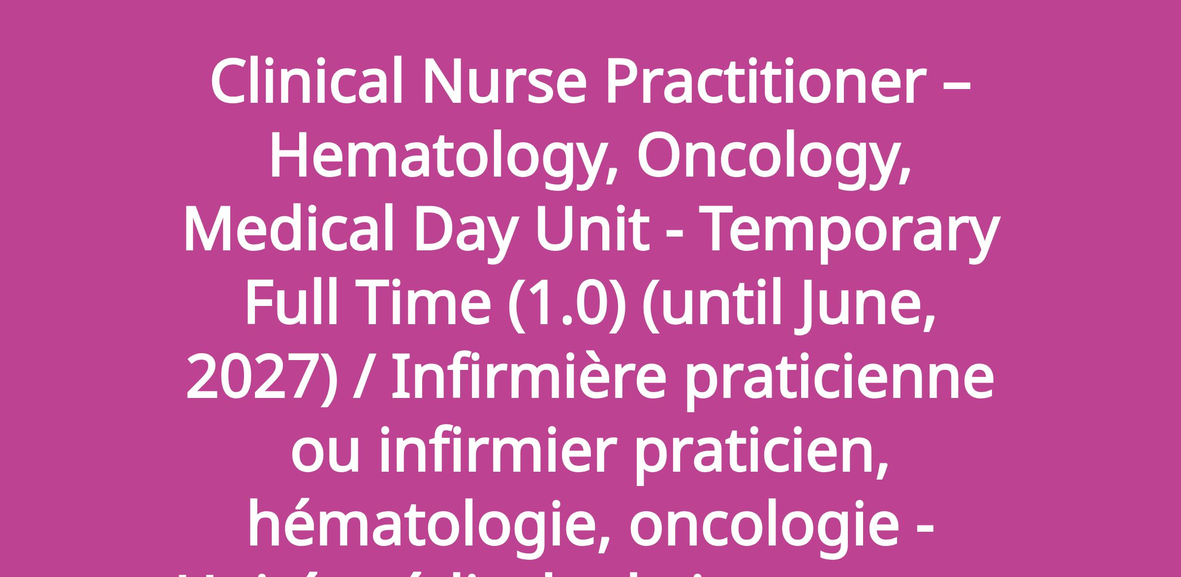 Veuillez noter : si vous êtes actuellement un employé du CHEO ayant accès à Workday, veuillez postuler à cette offre via l'application Workday en tant que candidat interne.
