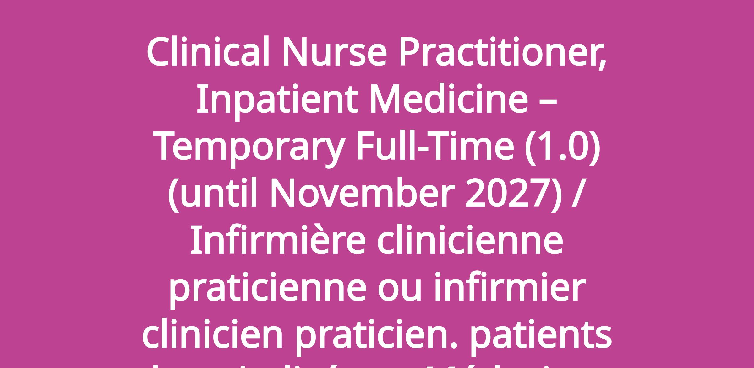 Travaillant en étroite collaboration avec l’équipe interdisciplinaire de médecine pour patients hospitalisés, l’IP joue un rôle clé au sein d’une équipe spécialisée d’IP offrant des soins complets et coordonnés aux patientes et patients pédiatriques. Ce poste est axé sur les enfants qui ont des troubles liés à l’alimentation ou des besoins complexes en soins de sous-spécialité, souvent comme préoccupation principale. L’IP appuie les patientes et patients et les familles qui ont besoin de planification des soins, favorise une solide collaboration multidisciplinaire et assure la continuité des soins tout au long du séjour à l’hôpital, tout en facilitant la transition en douceur vers les soins communautaires.
