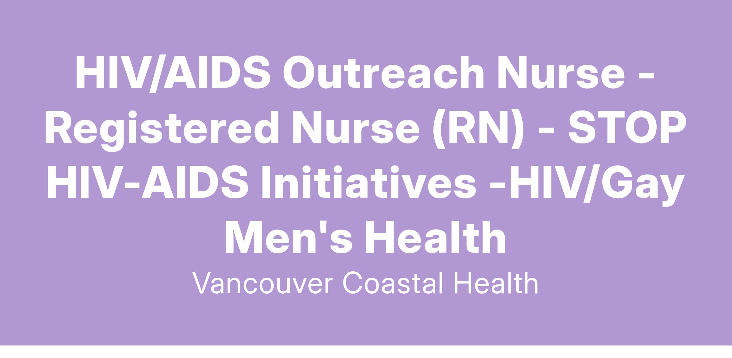 As a HIV/AIDS Outreach Nurse with Vancouver Coastal Health, you will: