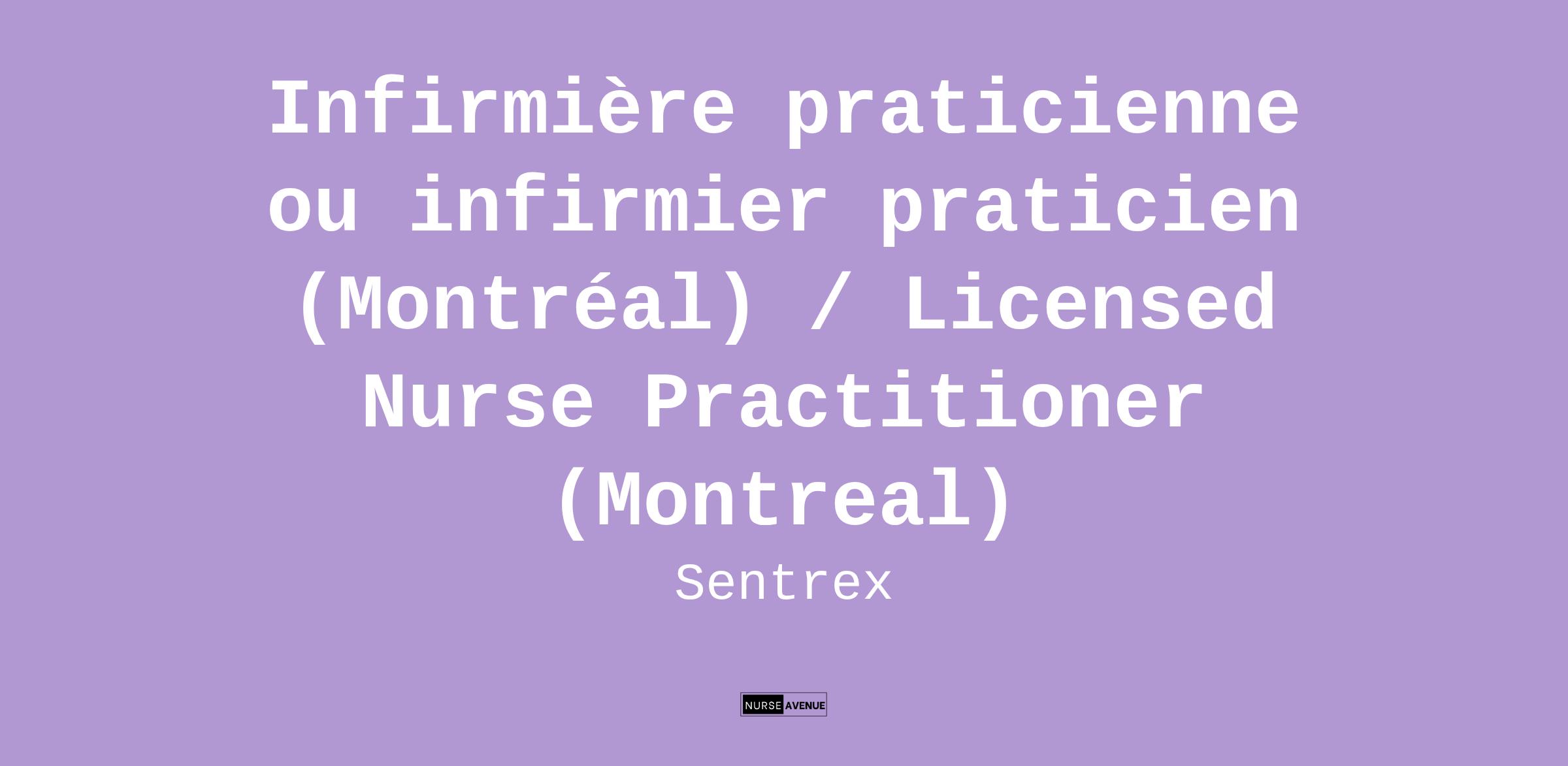 - Licensed Nurse Practitioner in the province of Quebec