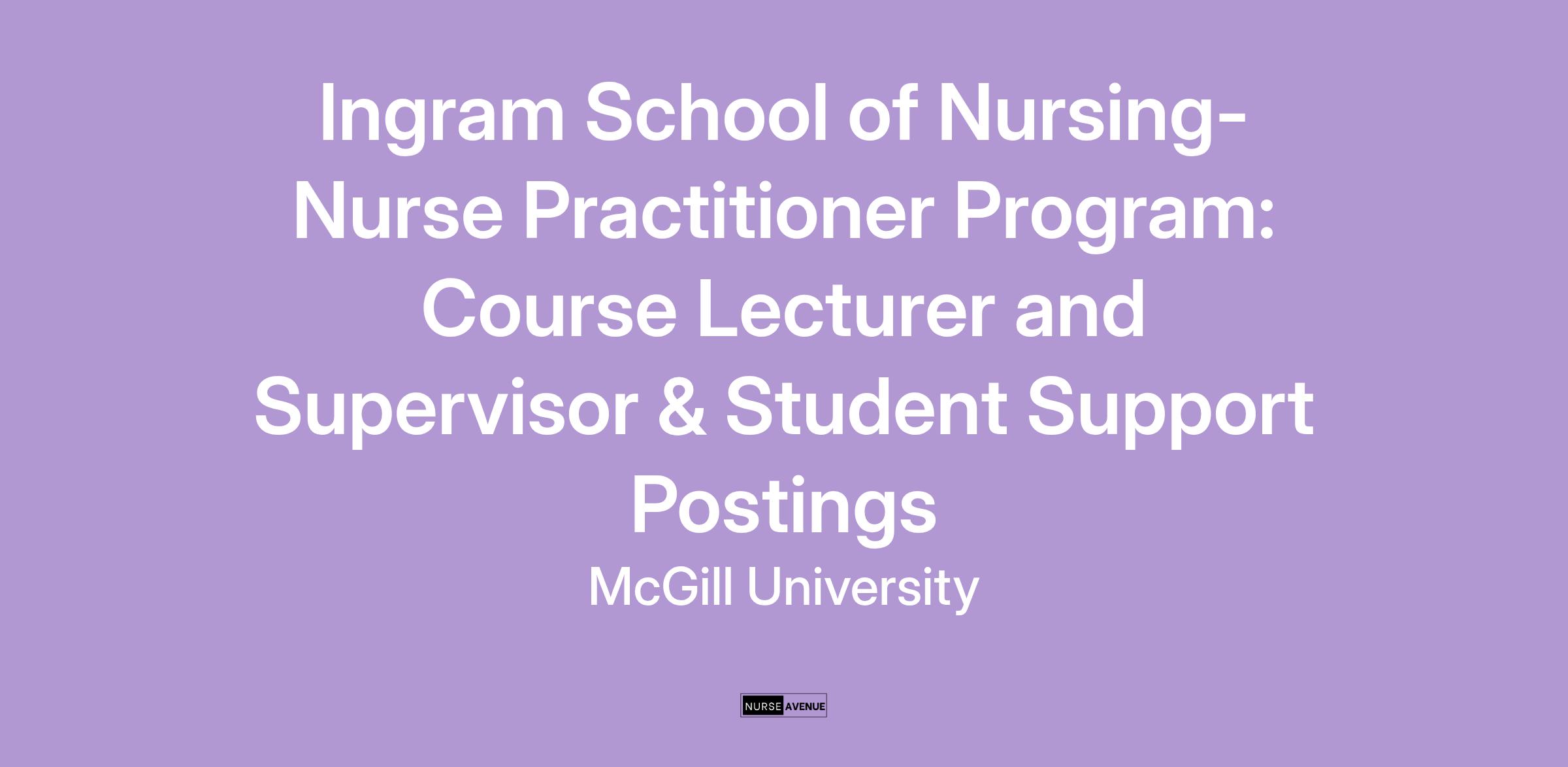 The Ingram School of Nursing is searching for Supervisor & Student Support Professionals and Course Lecturers for their Nurse Practitioner Program courses for the Winter 2026 semester.