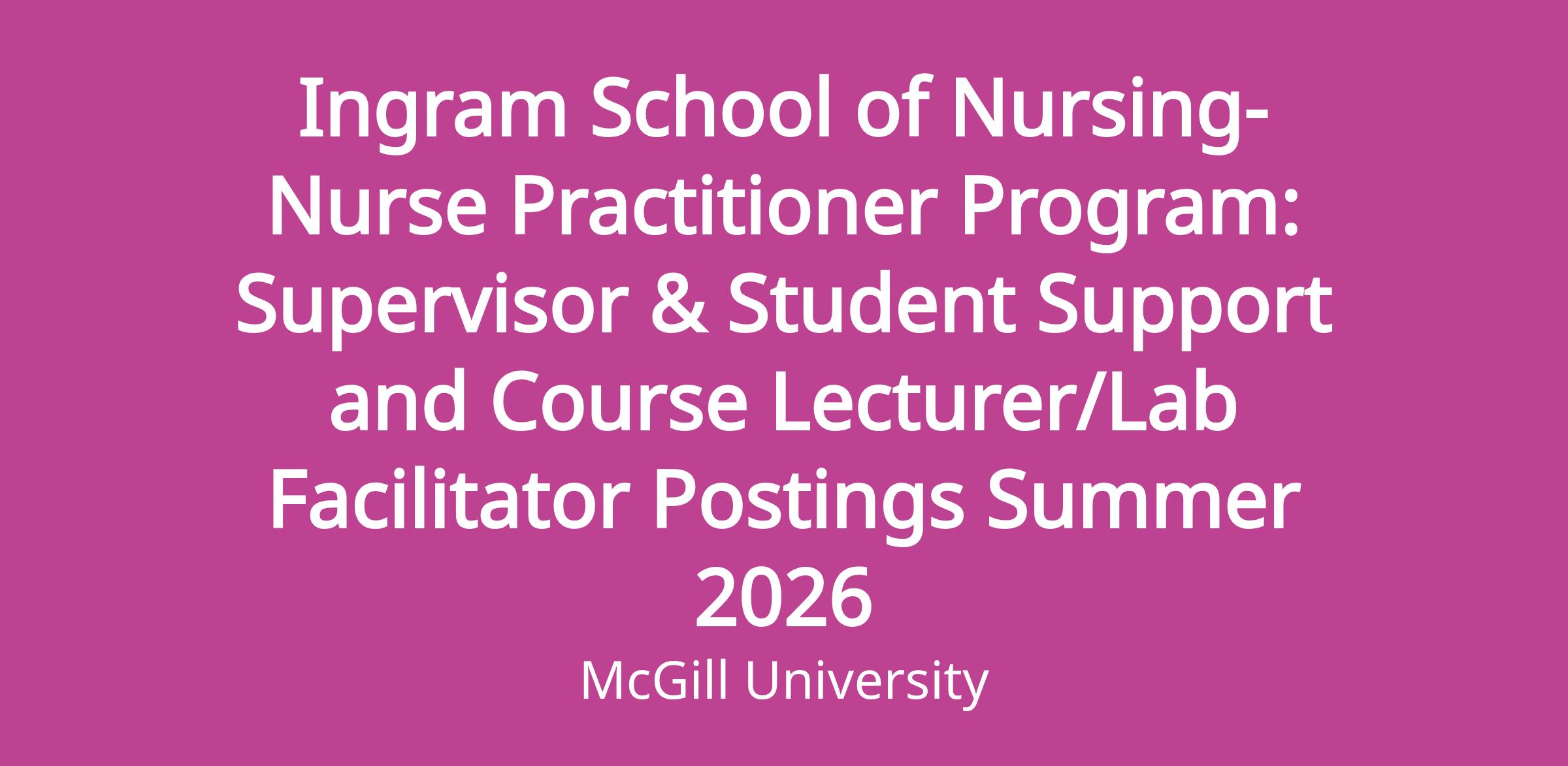The Ingram School of Nursing is searching for Supervisor & Student Support Professionals and Course Lecturers/Lab Facilitator for the Nurse Practitioner Program courses for the Summer 2026 semester.