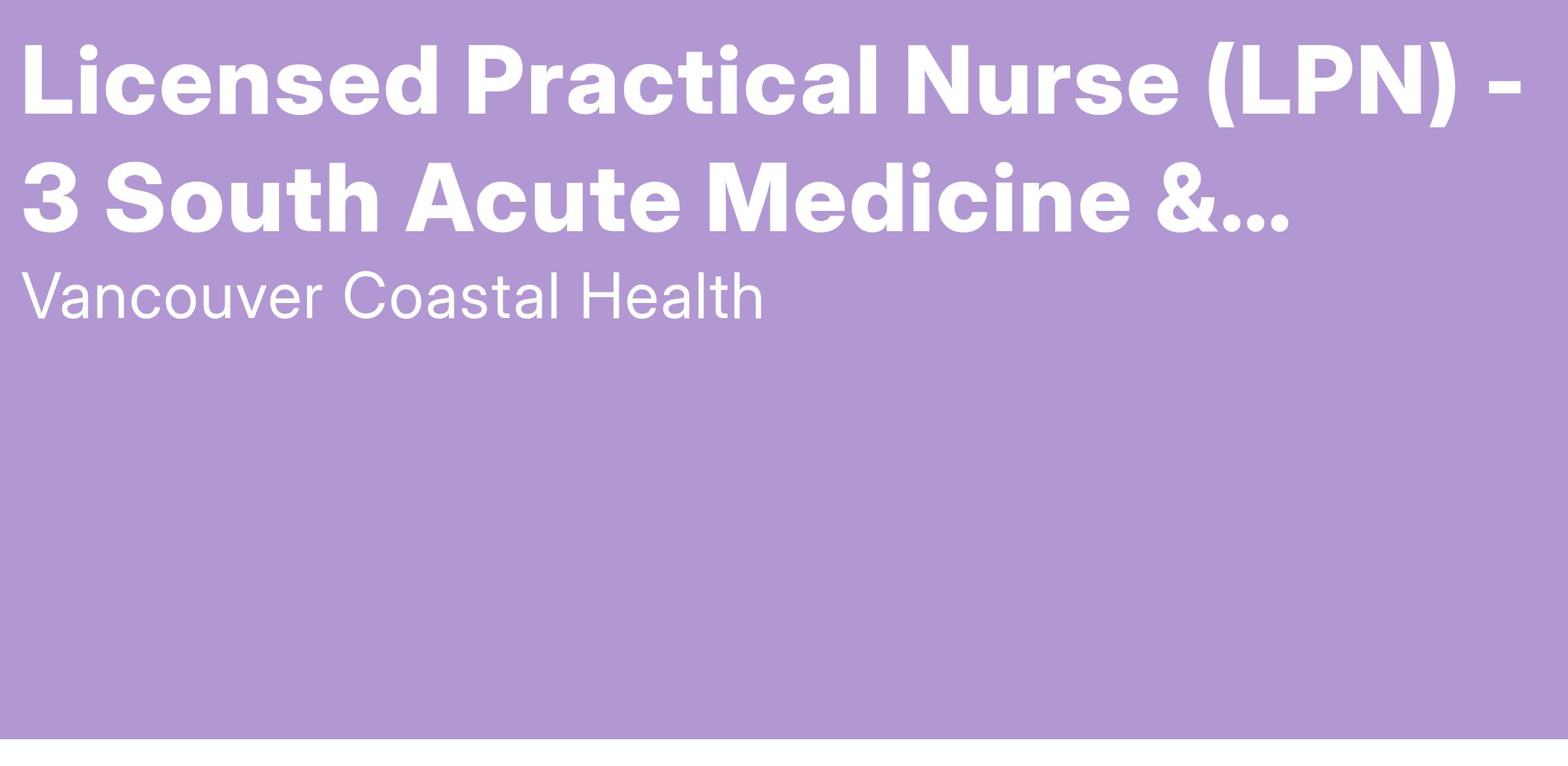 Come work as a Licensed Practical Nurse with Vancouver Coastal Health (VCH)!