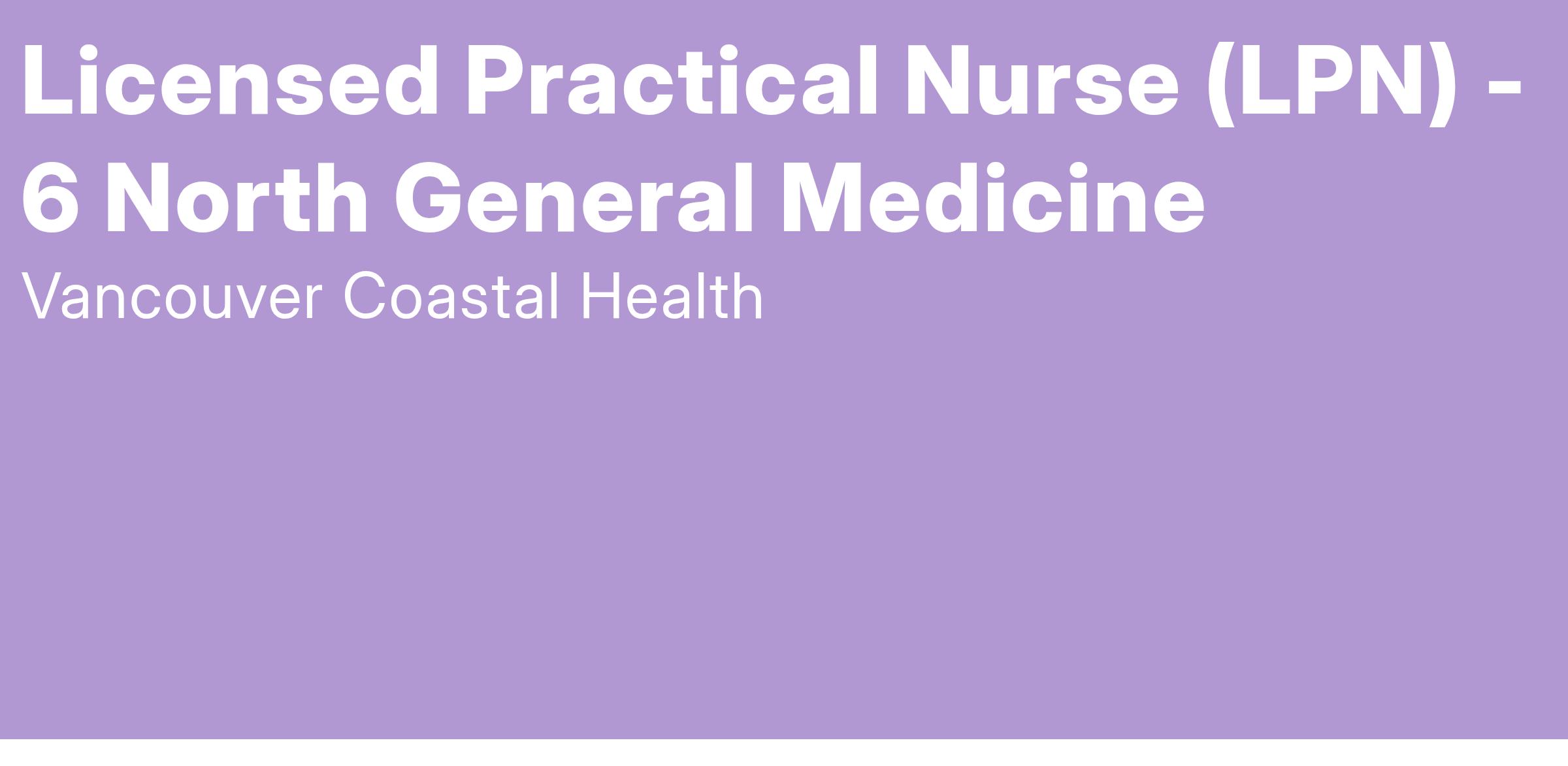Come work as a Licensed Practical Nurse (LPN) with Vancouver Coastal Health!