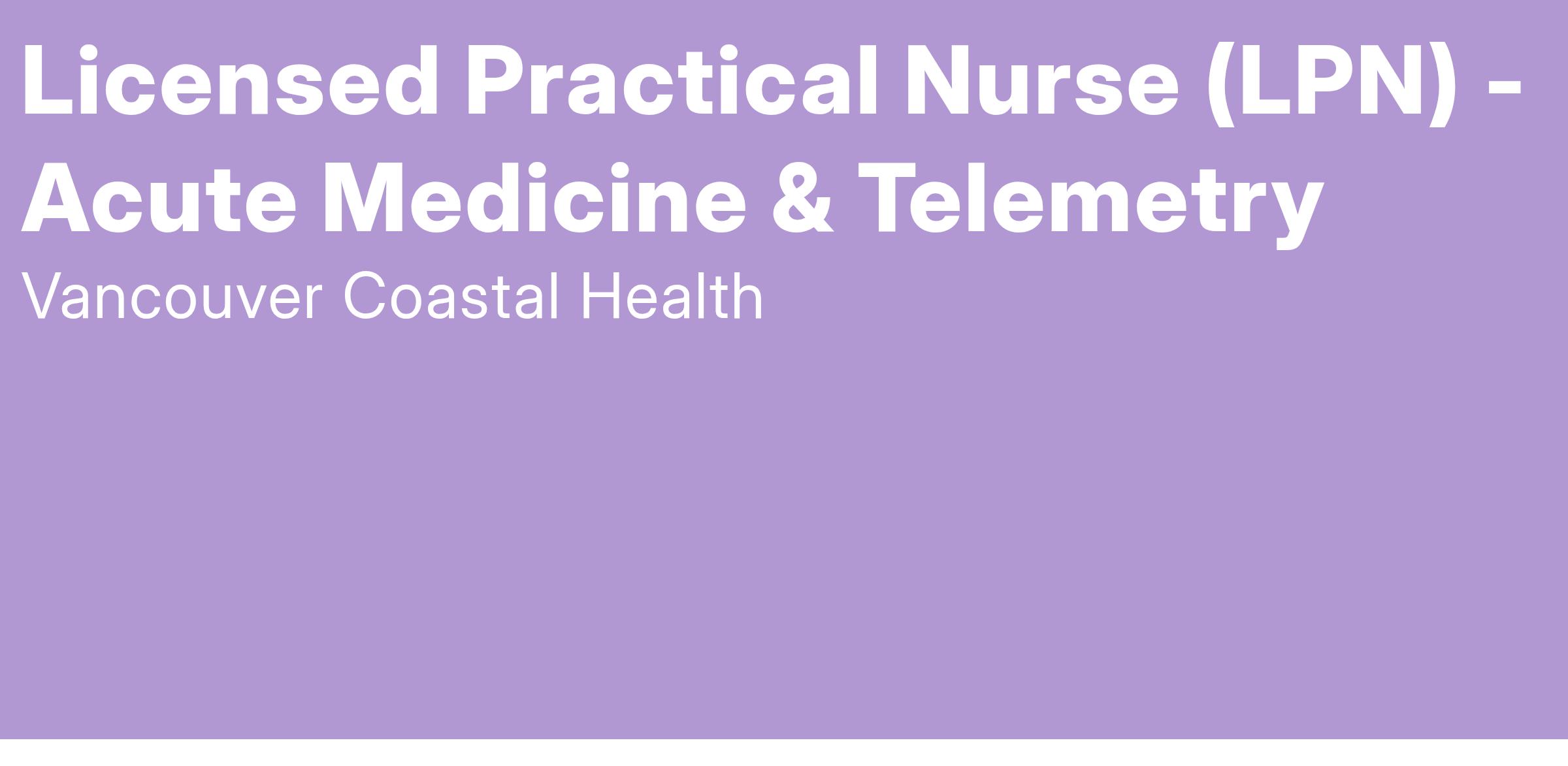 Come work as a Licensed Practical Nurse with Vancouver Coastal Health (VCH)!