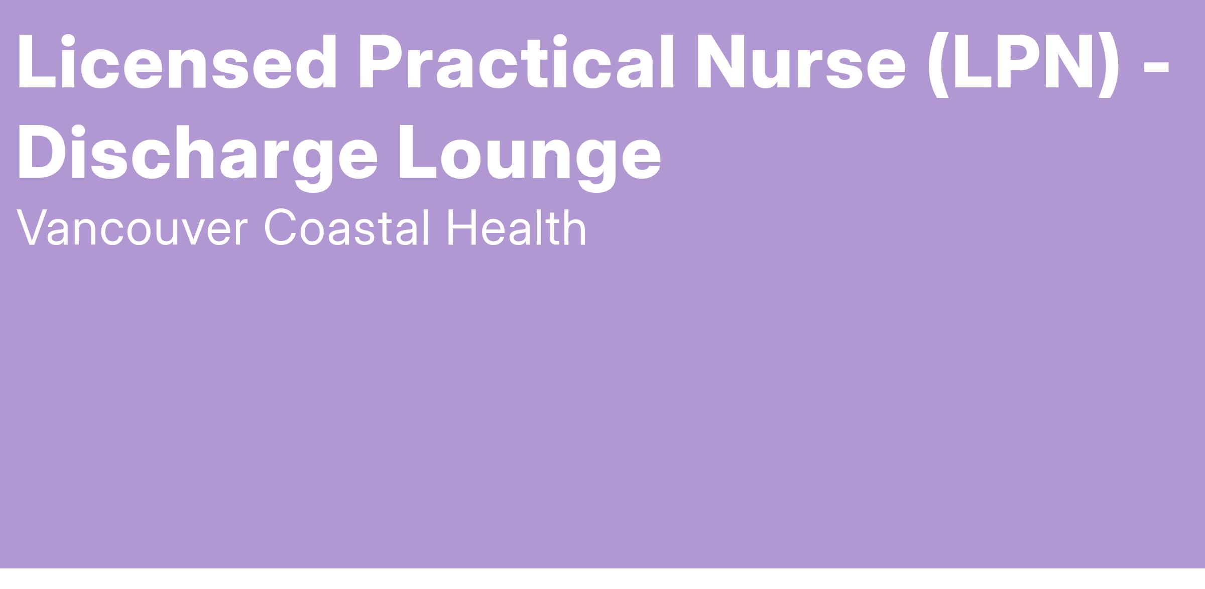 Come work as a Licensed Practical Nurse with Vancouver Coastal Health (VCH)!