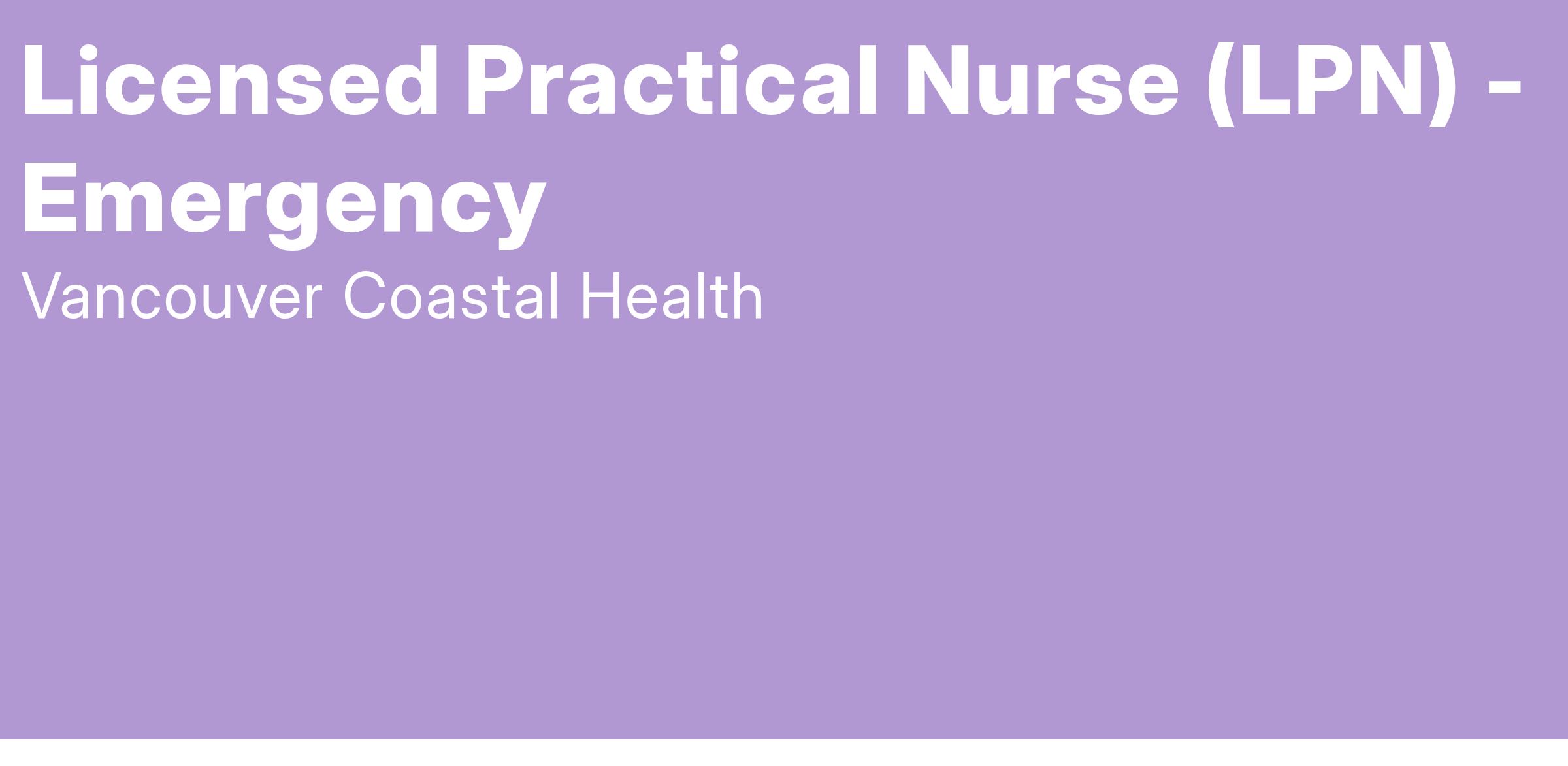 Vancouver Coastal Health is looking for a Licensed Practical Nurse to join the Emergency team at Richmond Hospital in Richmond, BC.Β Β Are you a dedicated healthcare worker and enjoy working as a member of an interdisciplinary care team? Do you thrive in both independent and collaborative environments? Apply today to join our team!