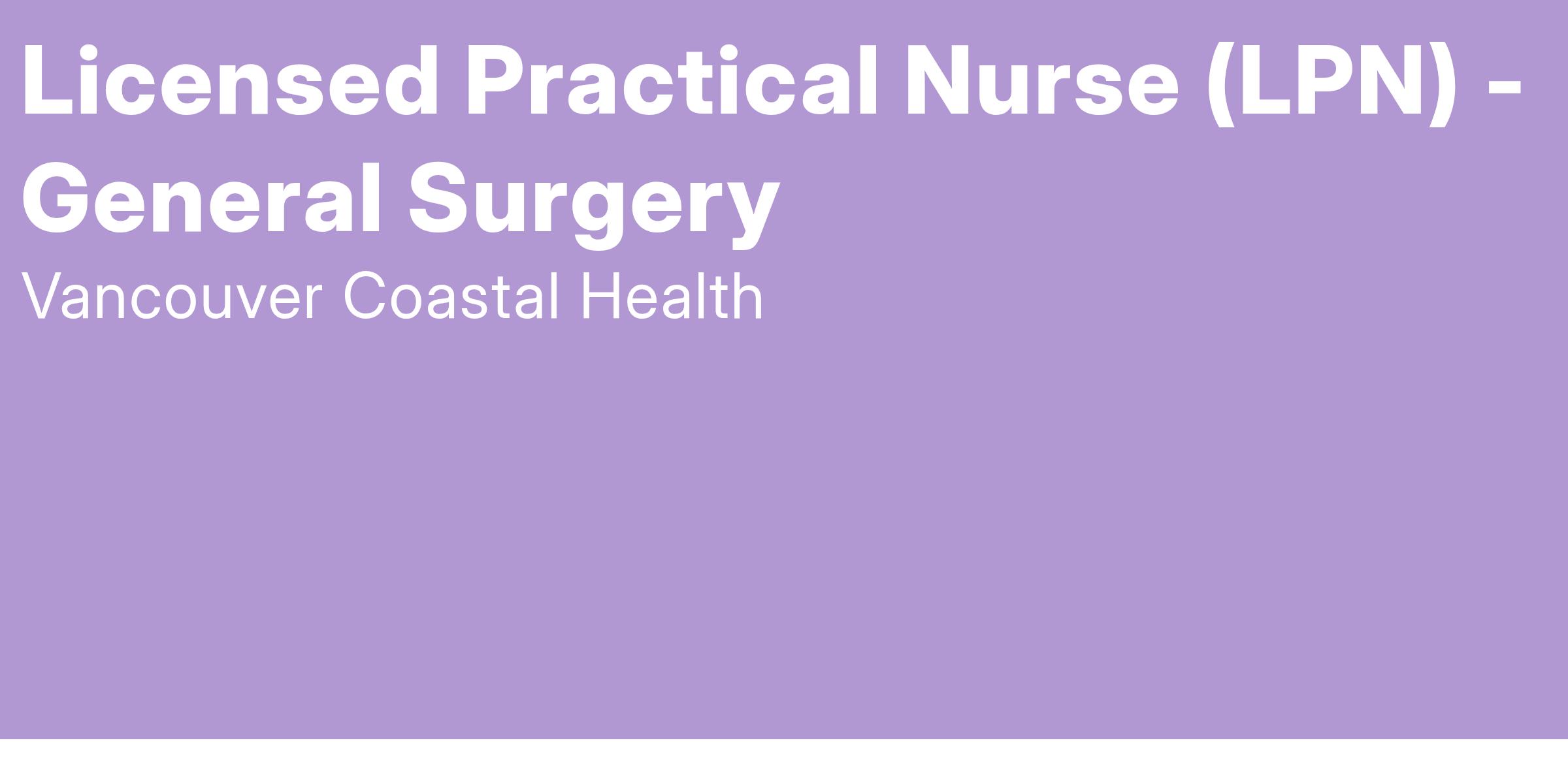 Come work as a Licensed Practical Nurse (LPN) with Vancouver Coastal Health (VCH)!