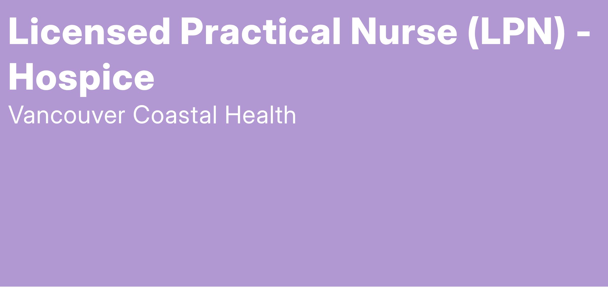 Come work as a Licensed Practical Nurse with Vancouver Coastal Health (VCH)!