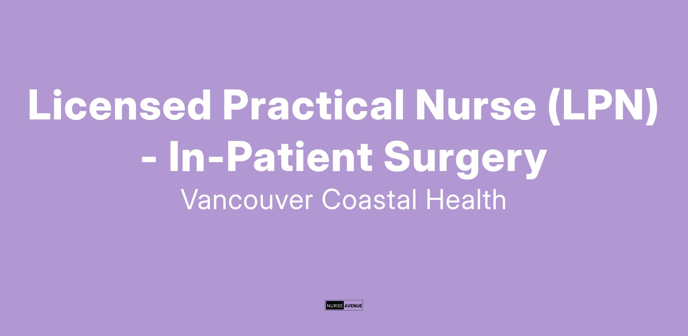 Come work as a Licensed Practical Nurse with Vancouver Coastal Health (VCH)!