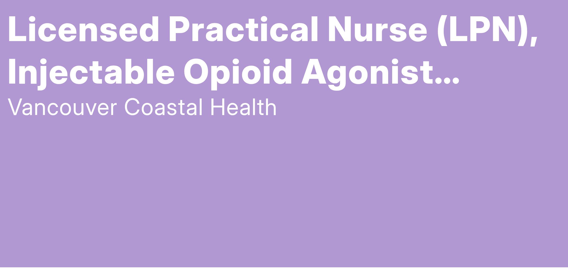 Vancouver Coastal Health is looking for a Licensed Practical Nurse (LPN) to join the Injectable Opioid Agonist Treatment Services team in the Downtown Eastside (DTES), Vancouver, BC. Apply today to join our team!