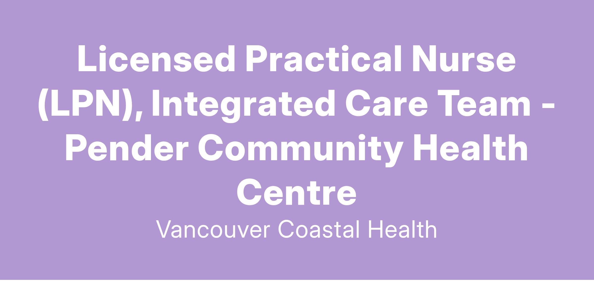 Vancouver Coastal Health is looking for a Licensed Practical Nurse (LPN) to join the team at Pender Community Health Centre in Vancouver, BC. Are you a dedicated healthcare worker and enjoy working as a member of an interdisciplinary care team? Do you thrive in both independent and collaborative environments? Apply today to join our team!