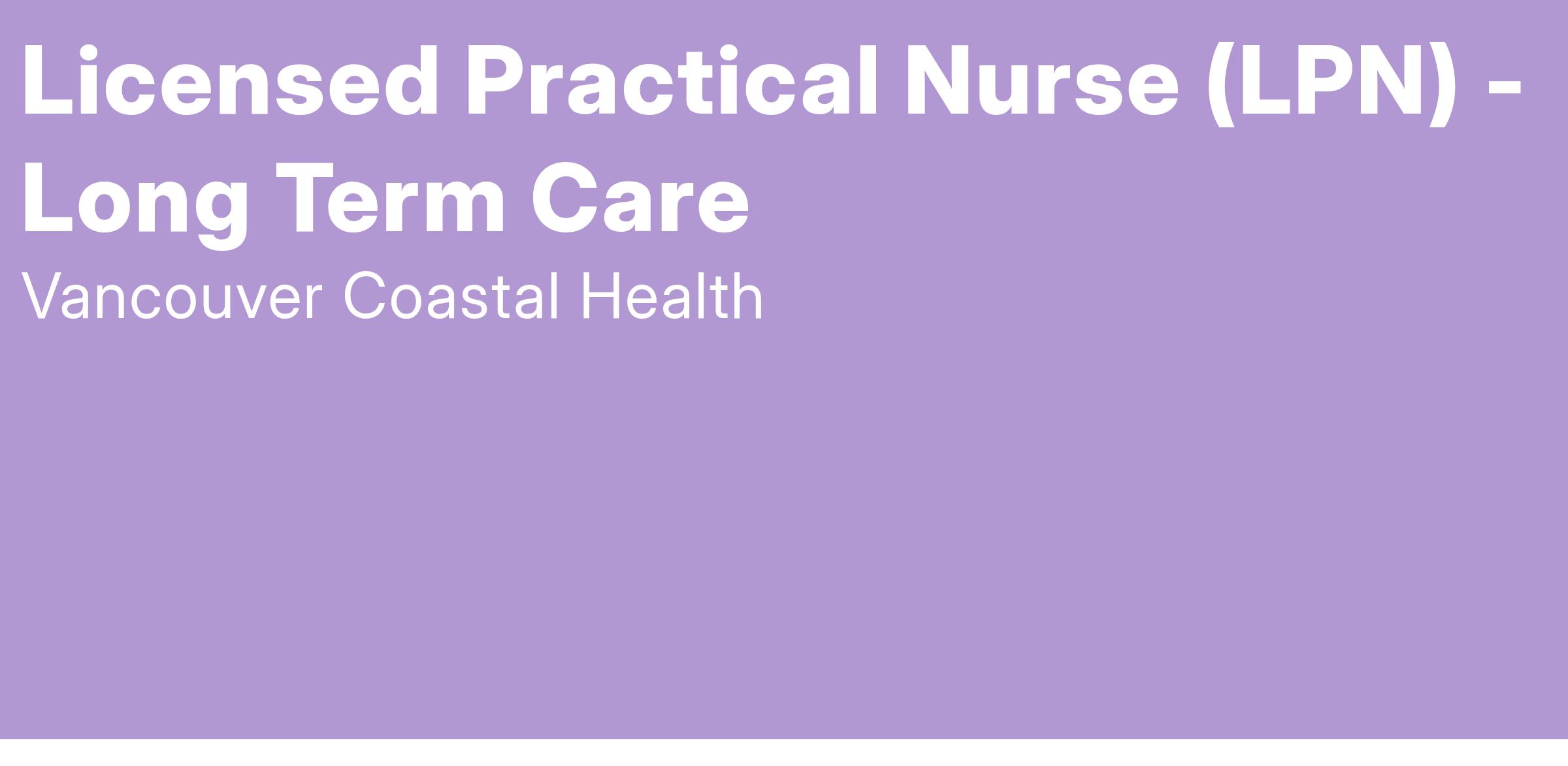 Come work as a Licensed Practical Nurse (LPN) with Vancouver Coastal Health (VCH)!