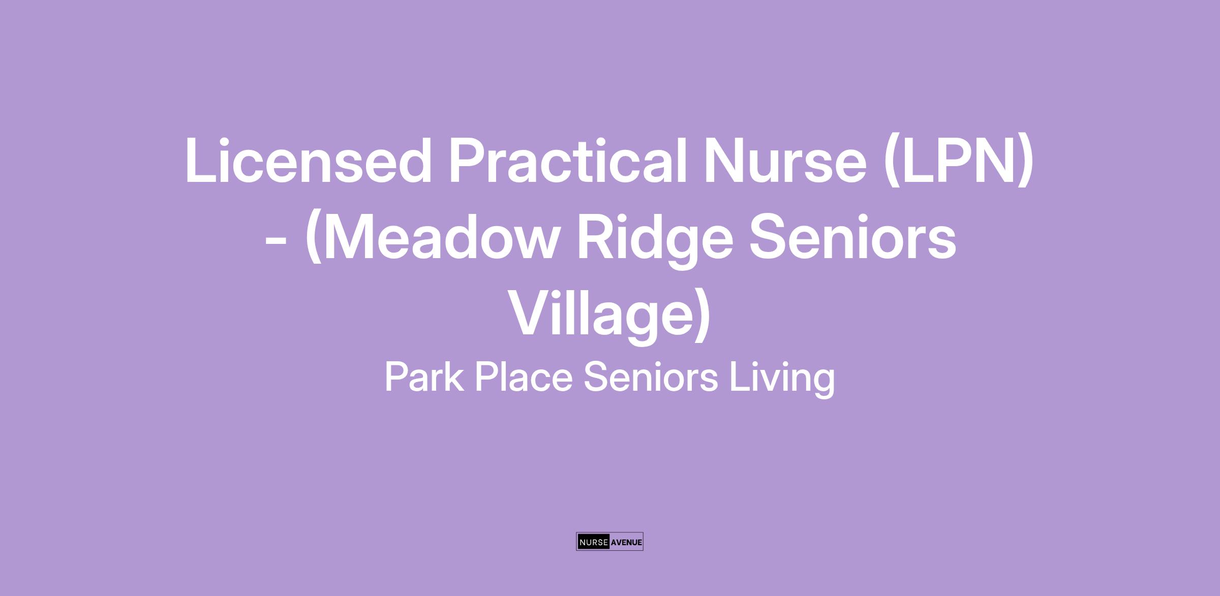 JOB TITLE: Licensed Practical Nurse Site: Meadow Ridge Seniors Village FTE: 0.70 - Various Positions Hours of Work: - 0630-1500, 1430-2300, 2230-0700 Rotation - 7 shifts in 14 days