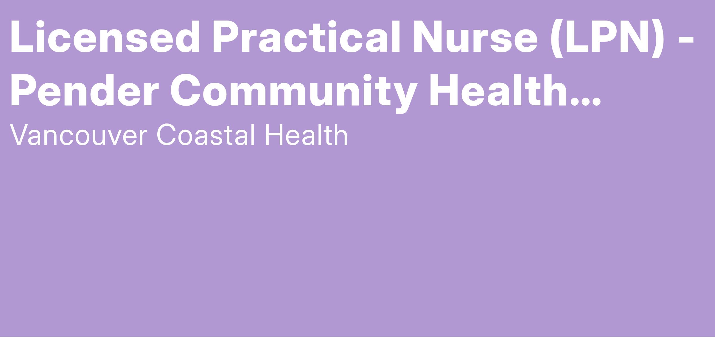 Come work as a Licensed Practical Nurse with Vancouver Coastal Health (VCH)!