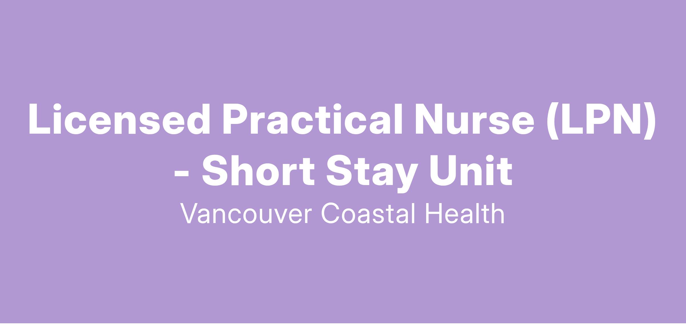 Come work as a Licensed Practical Nurse with Vancouver Coastal Health (VCH)!