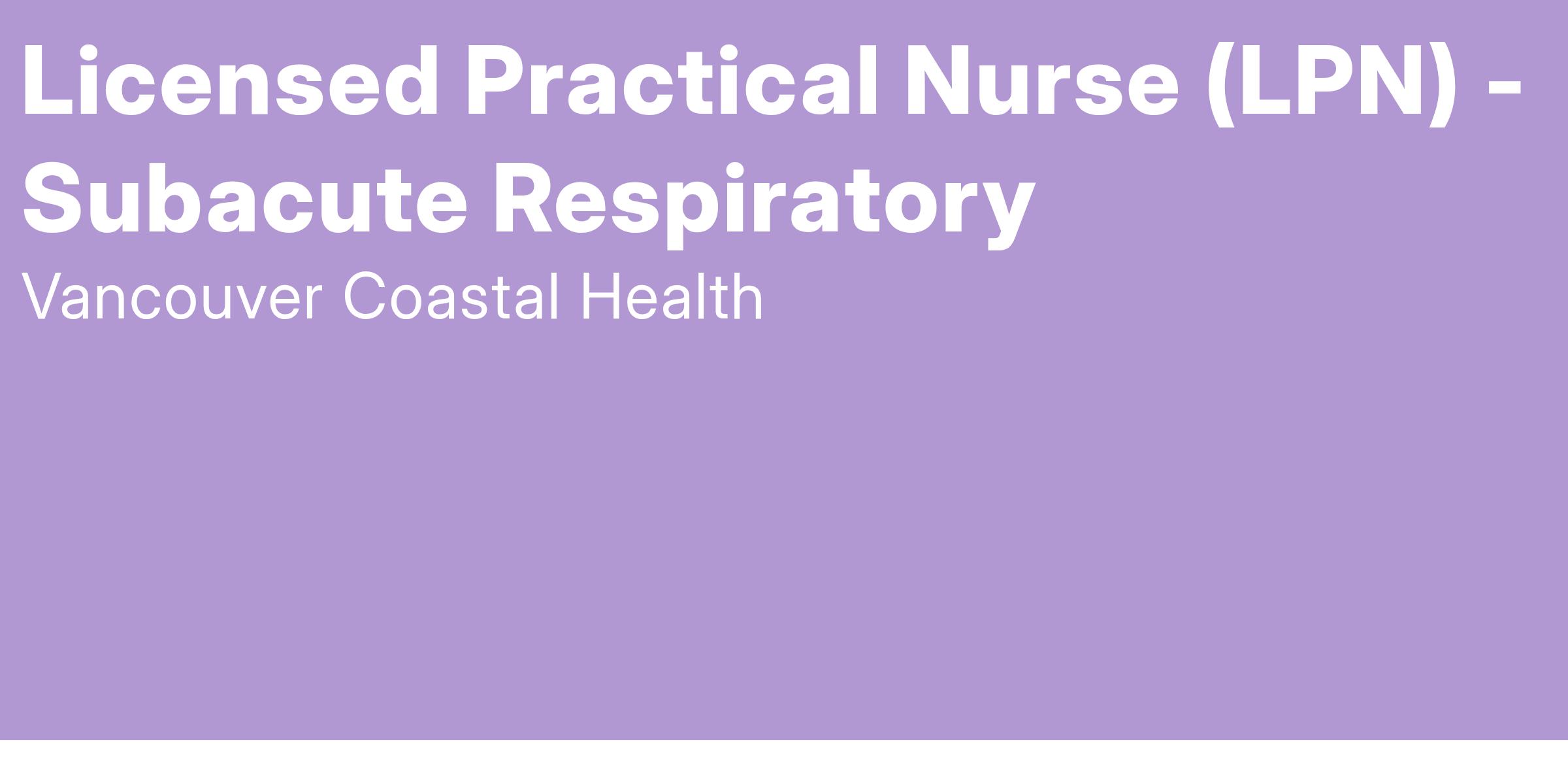 Vancouver Coastal Health is looking for a Licensed Practical Nurse to join the Subacute Respiratory Unit at Vancouver General Hospital.Ā