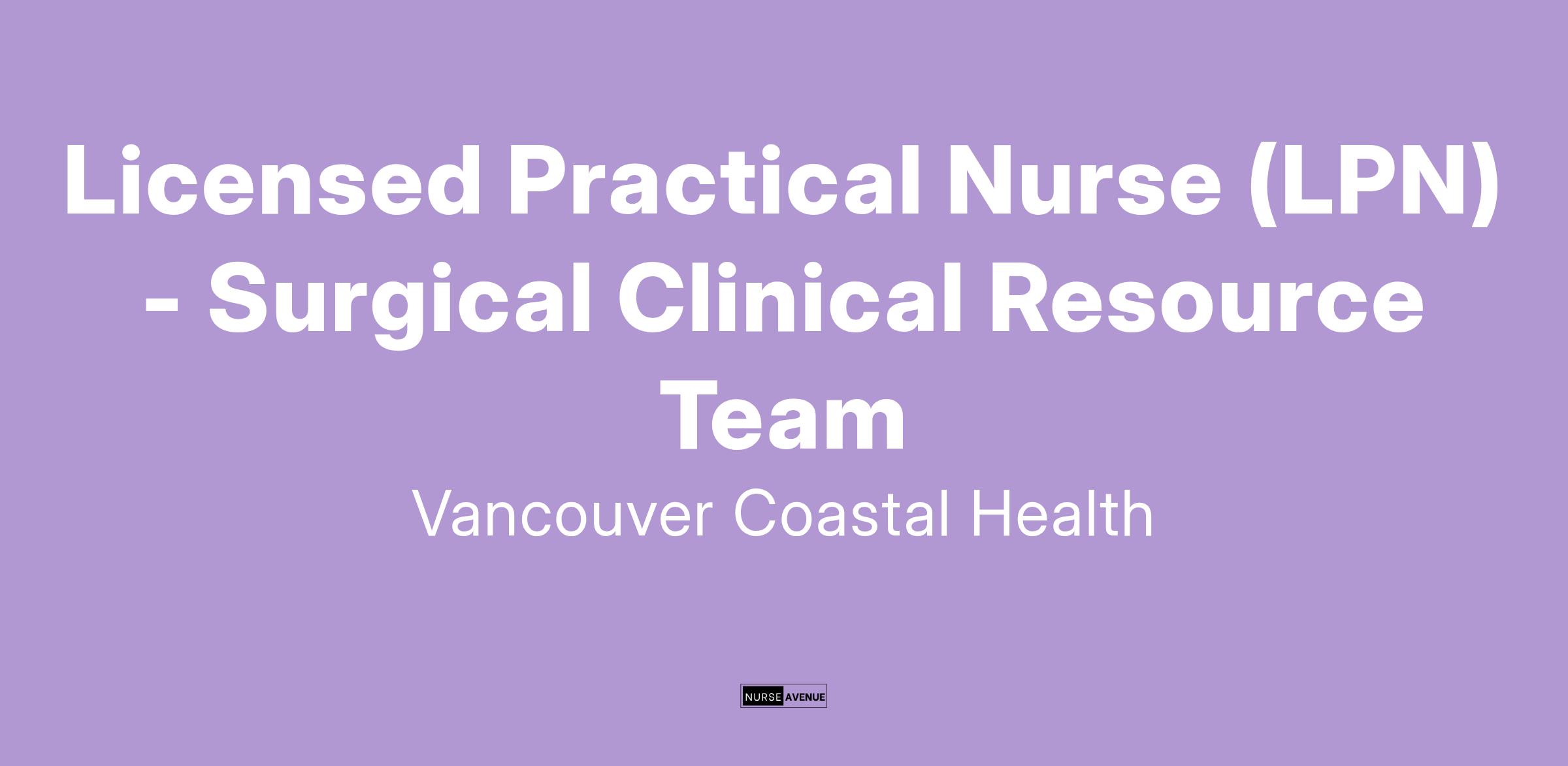 Vancouver Coastal Health is looking for a Licensed Practical Nurse to join the Surgical ā Clinical Resource team at Vancouver General Hospital. Are you a dedicated healthcare worker and enjoy working as a member of an interdisciplinary care team? Do you thrive in both independent and collaborative environments? Apply to work as a Licensed Practical Nurse at Vancouver Coastal Health today!