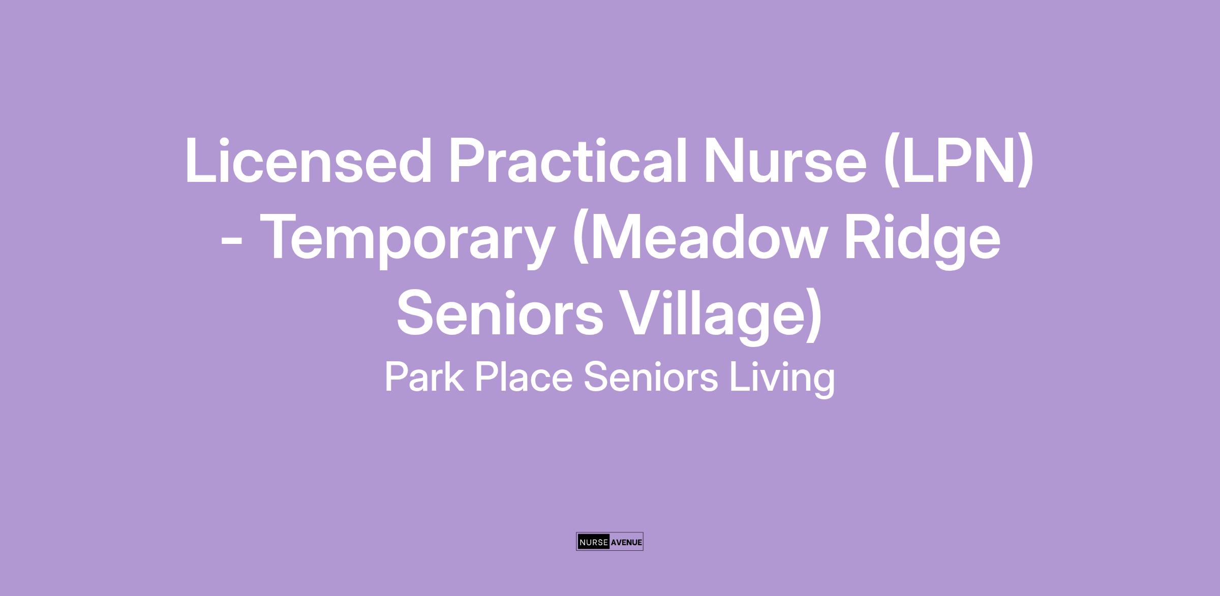 JOB TITLE: Licensed Practical Nurse Site: Meadow Ridge Seniors Village FTE: 0.70 - Nights Hours of Work: - 2230-0700 (Temporary until January 2026 or Return of Incumbent) Rotation - 7 shifts in 14 days
