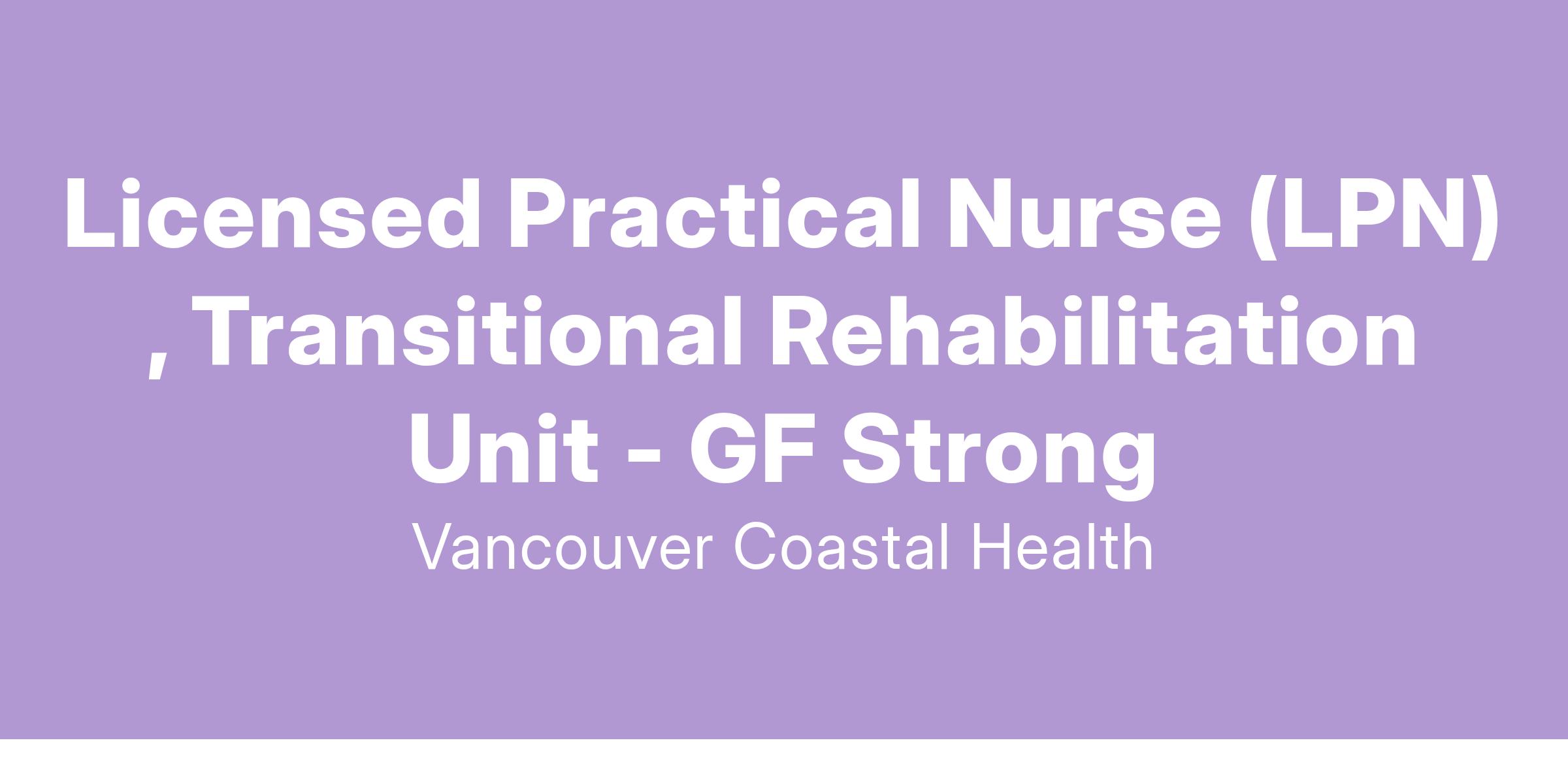 Vancouver Coastal Health is looking for a Licensed Practical Nurse (LPN) to join the Transitional Rehab team at G.F. Strong, Vancouver, BC. Are you a dedicated healthcare worker and enjoy working as a member of an interdisciplinary care team? Do you thrive in both independent and collaborative environments? Apply today to join our team!