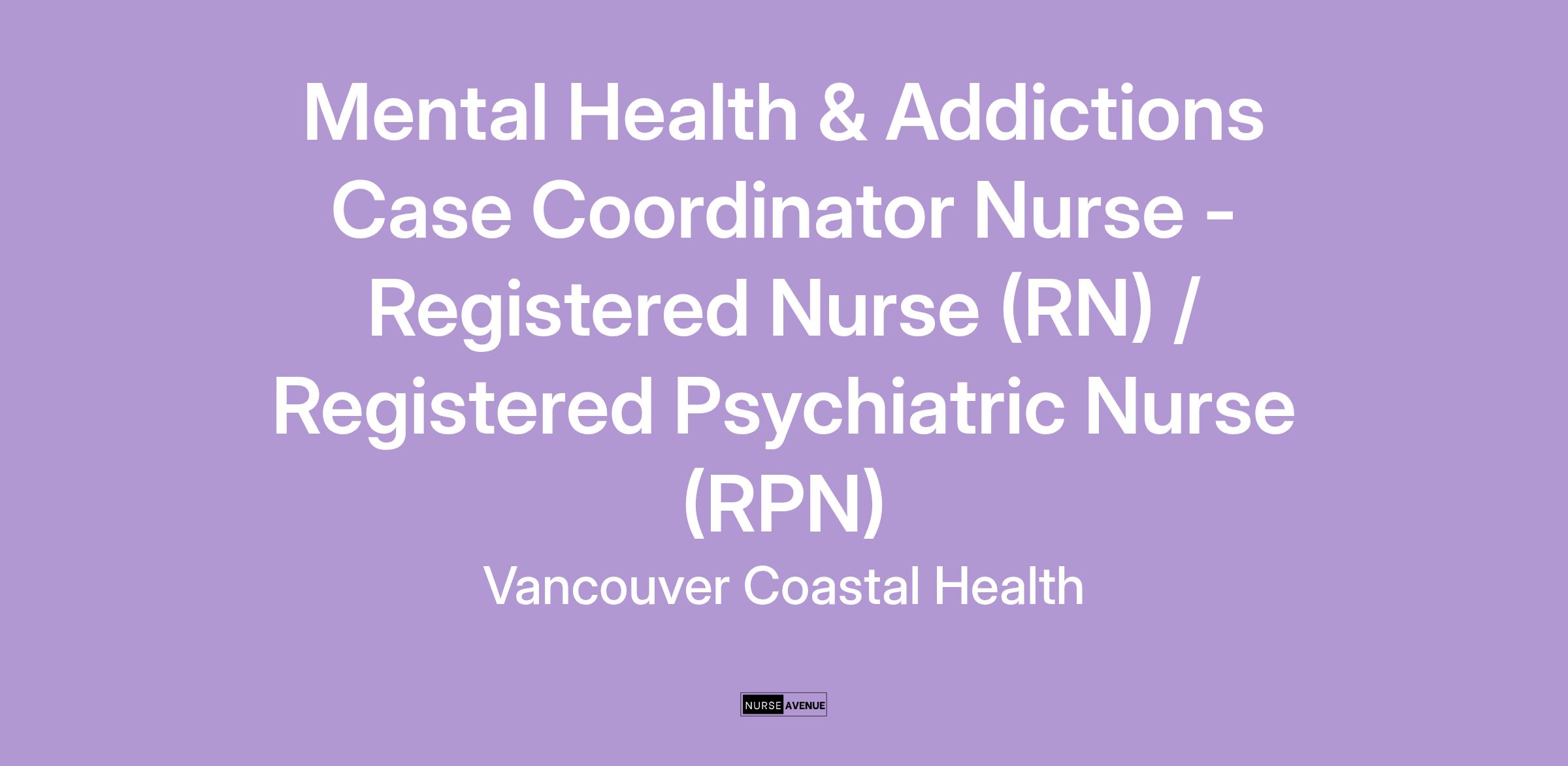 Come work as a Mental Health & Addictions Case Coordinator Nurse with Vancouver Coastal Health (VCH)!