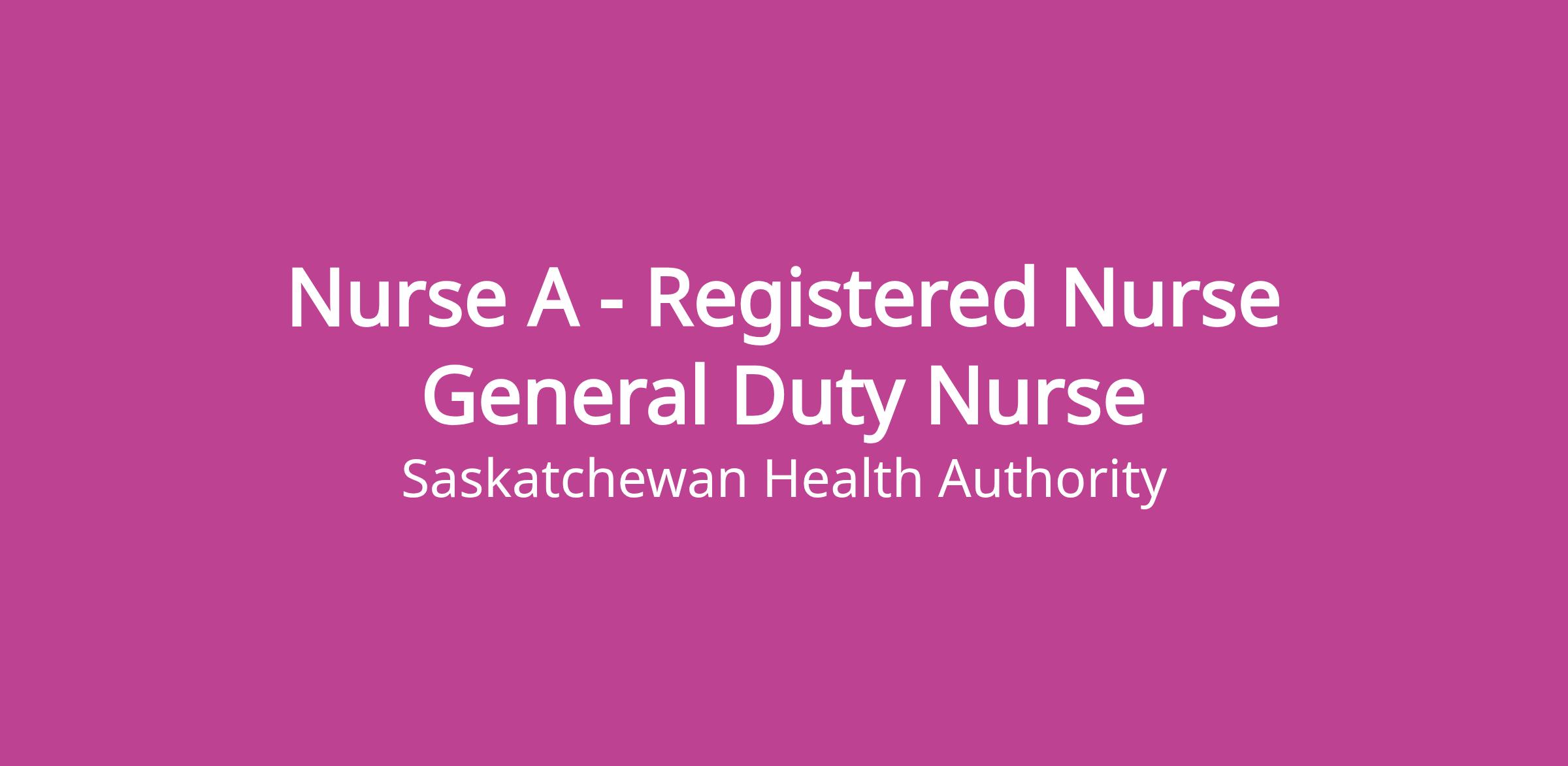 Job Description: The Registered Nurse is responsible for promoting the Mission, Vision and Values of the Saskatchewan Health Authority through provision of safe quality nursing care to clients. The Registered Nurse is responsible to the Manager of a designated area.