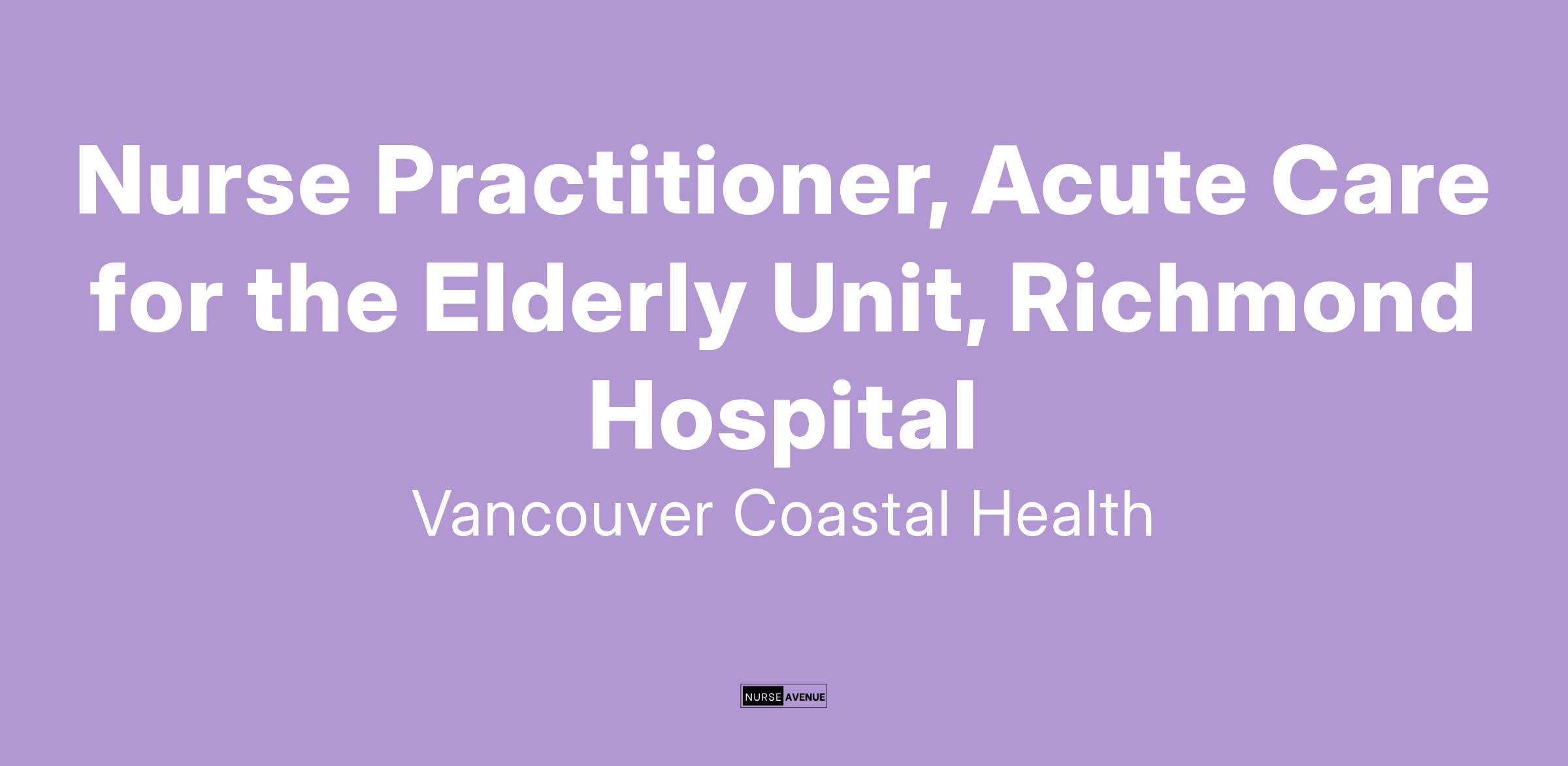 Vancouver Coastal Health is looking for a Nurse Practitioner to join the Acute Care for the Elderly (ACE) Unit at Richmond Hospital. Apply today to join our team!