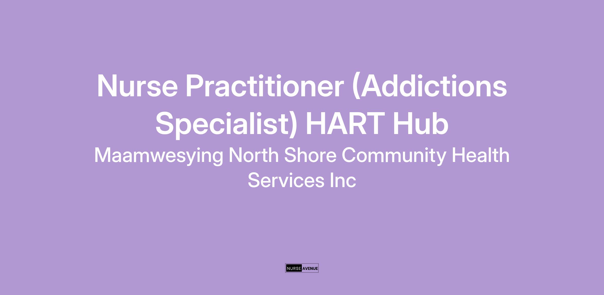 The opportunity: Under the direction of the Director of Mental Wellness and Minobimaadizing, the Nurse Practitioner (NP) – Addictions Specialist will provide addictions care to clients of the Maamwesying North Shore Community Health Services Inc. and the HART Hub. The approach to care is strengths-based and rooted in evidence-based practice and practice-based evidence.