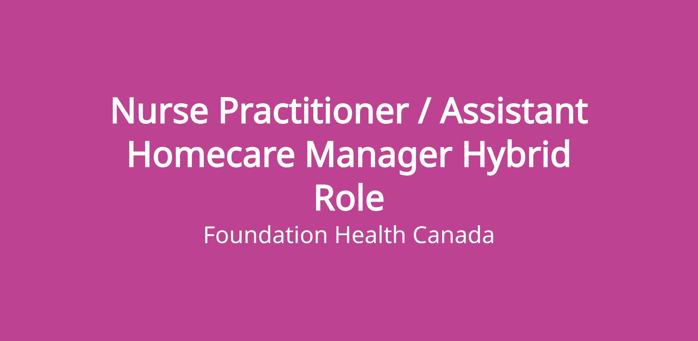 Foundation Health is seeking a highly skilled and compassionate Nurse Practitioner & Assistant Home Care Manager to join our growing interdisciplinary team. This hybrid leadership and clinical role combines geriatric primary care delivery within our clinic with clinical and operational management of home care services.