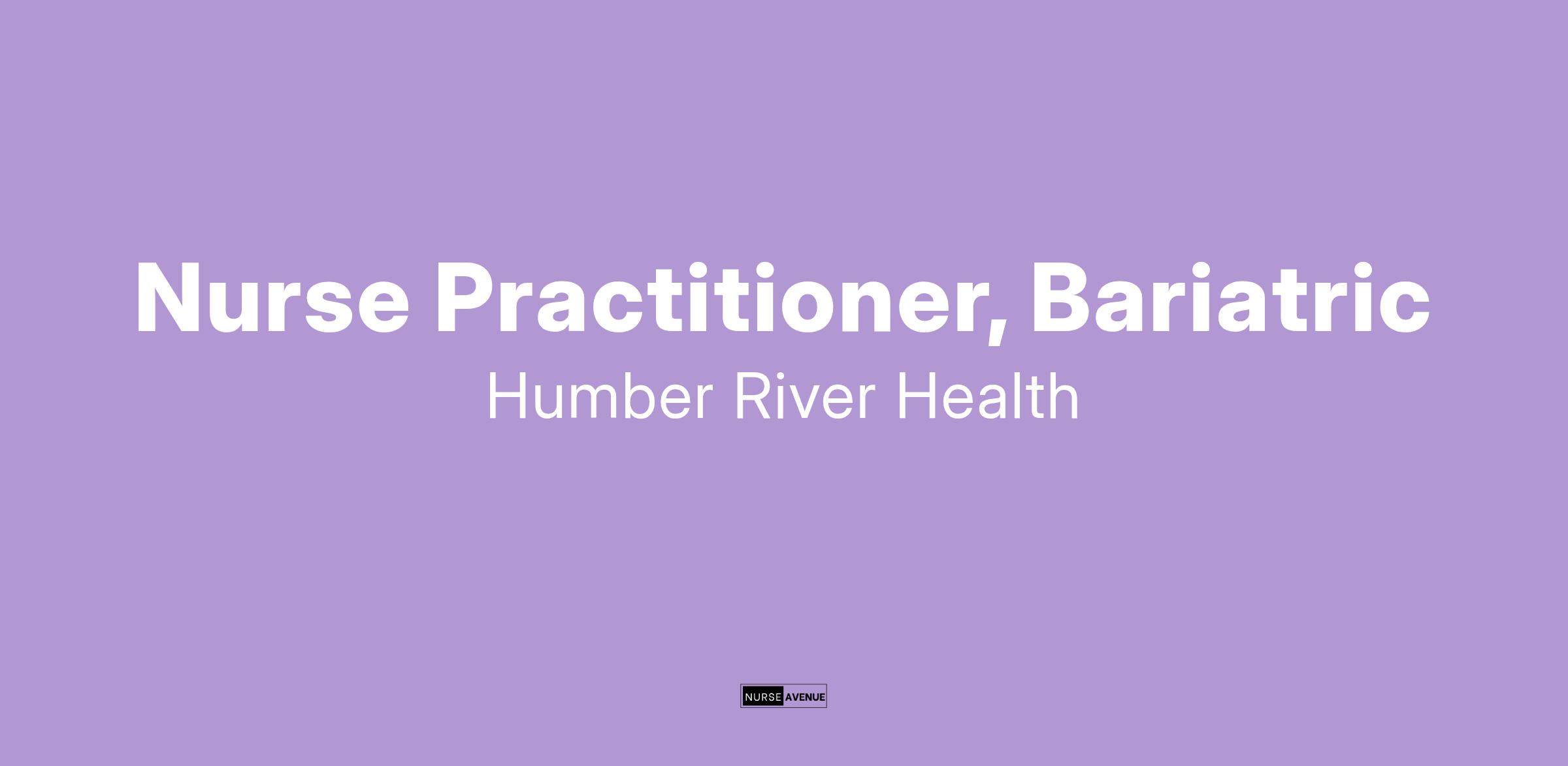 Humber River Health is committed to revolutionizing patient care for our diverse community. We are looking for exceptional individuals to join our great team: people who share our passion to deliver excellent, patient-focused, expert care. The Hospital is formally affiliated with both the University of Toronto and Queen’s University. We currently have an exciting opportunity for a Nurse Practitioner with our Bariatric, Surgical Program.