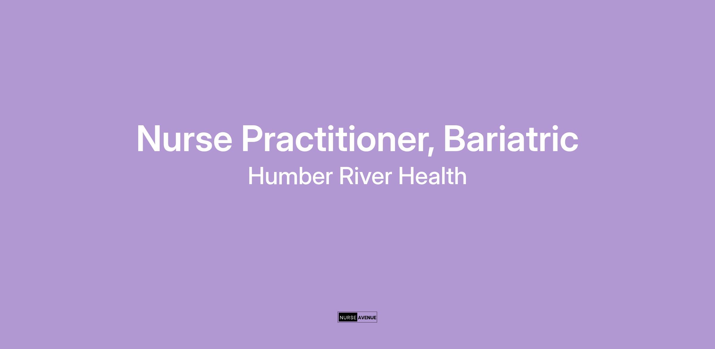 Humber River Health is committed to revolutionizing patient care for our diverse community. We are looking for exceptional individuals to join our great team: people who share our passion to deliver excellent, patient-focused, expert care. The Hospital is formally affiliated with both the University of Toronto and Queen’s University. We currently have an exciting opportunity for a Nurse Practitioner with our Bariatric, Surgical Program.
