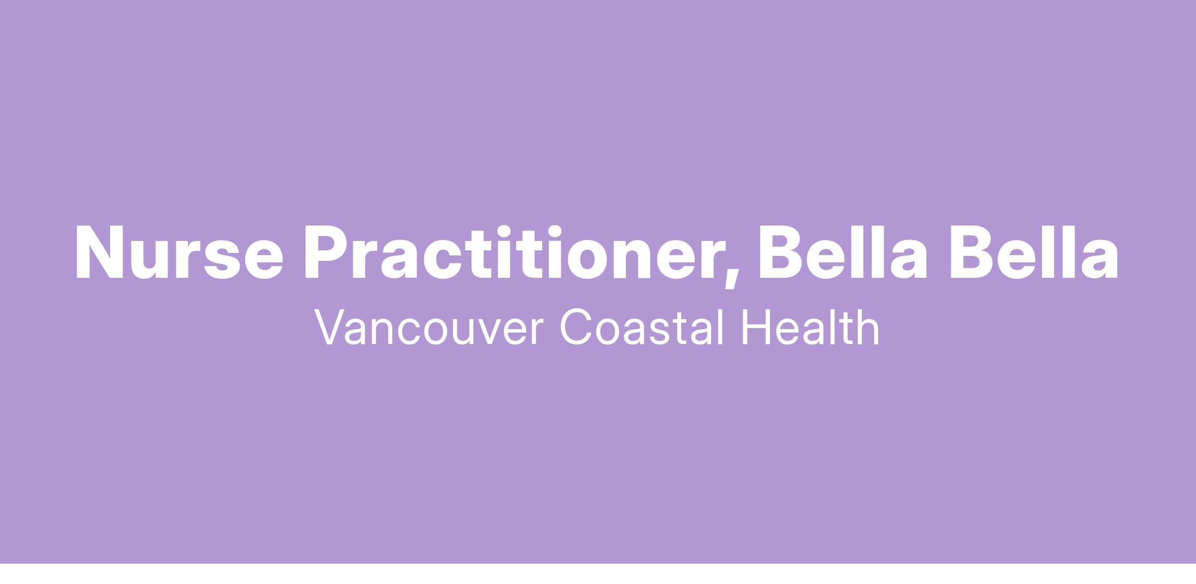 Bella Bella is currently seeking Nurse Practitioners to join their team of primary care and urgent care providers. The NP will collaborate with physicians, nurses, and other healthcare professionals to provide high-quality, patient-centered primary care to the people of Heiltsuk Nation and Bella Bella. The interdisciplinary team is enthusiastic about integrating NPs into their care model. Successful candidates will receive support from the VCH NP department and the regional NP team. Be a part of our growing team of VCH Coastal hospital/facility-based Nurse Practitioners!