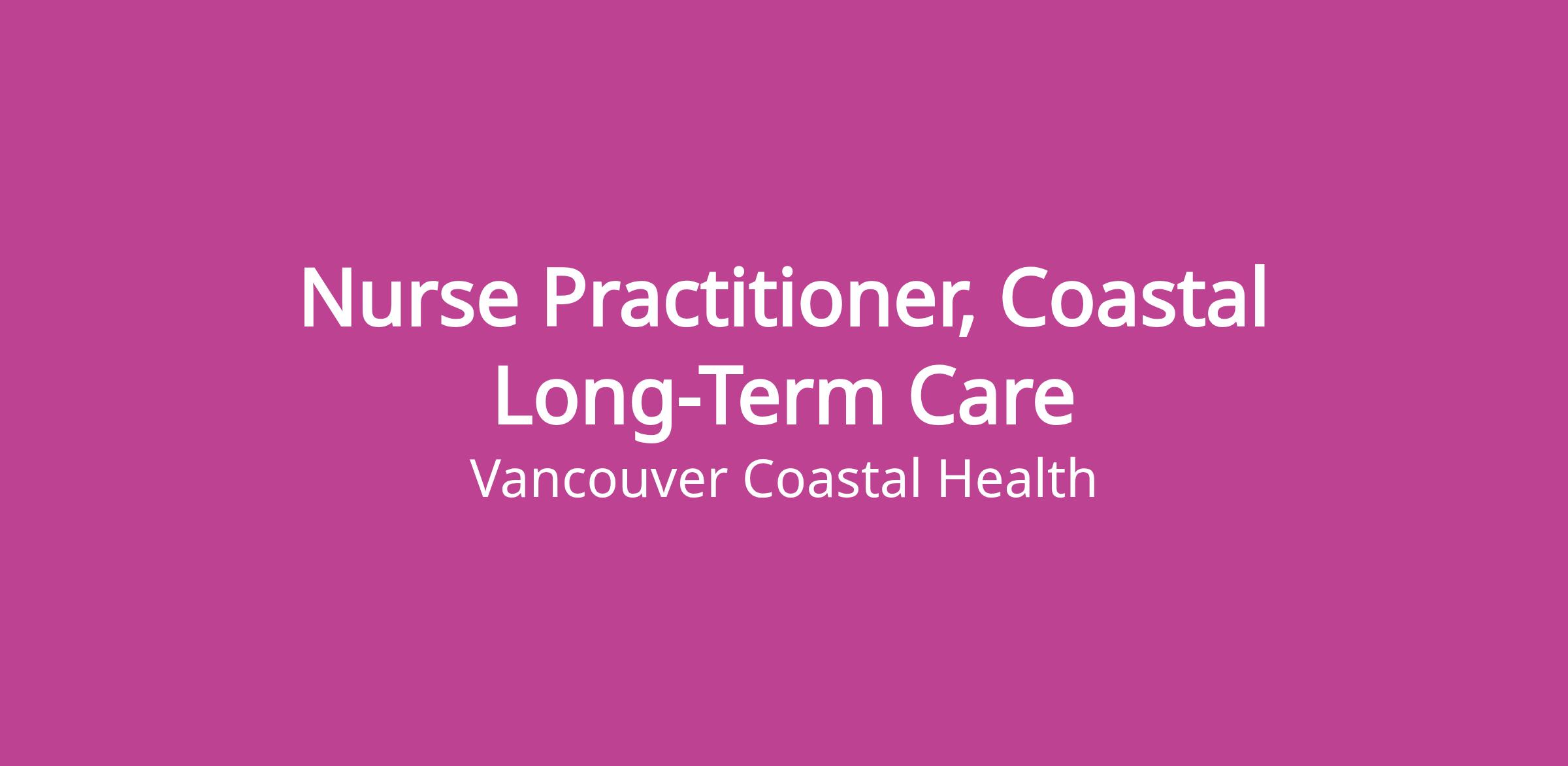 Come work as a Nurse Practitioner with Vancouver Coastal Health (VCH)!