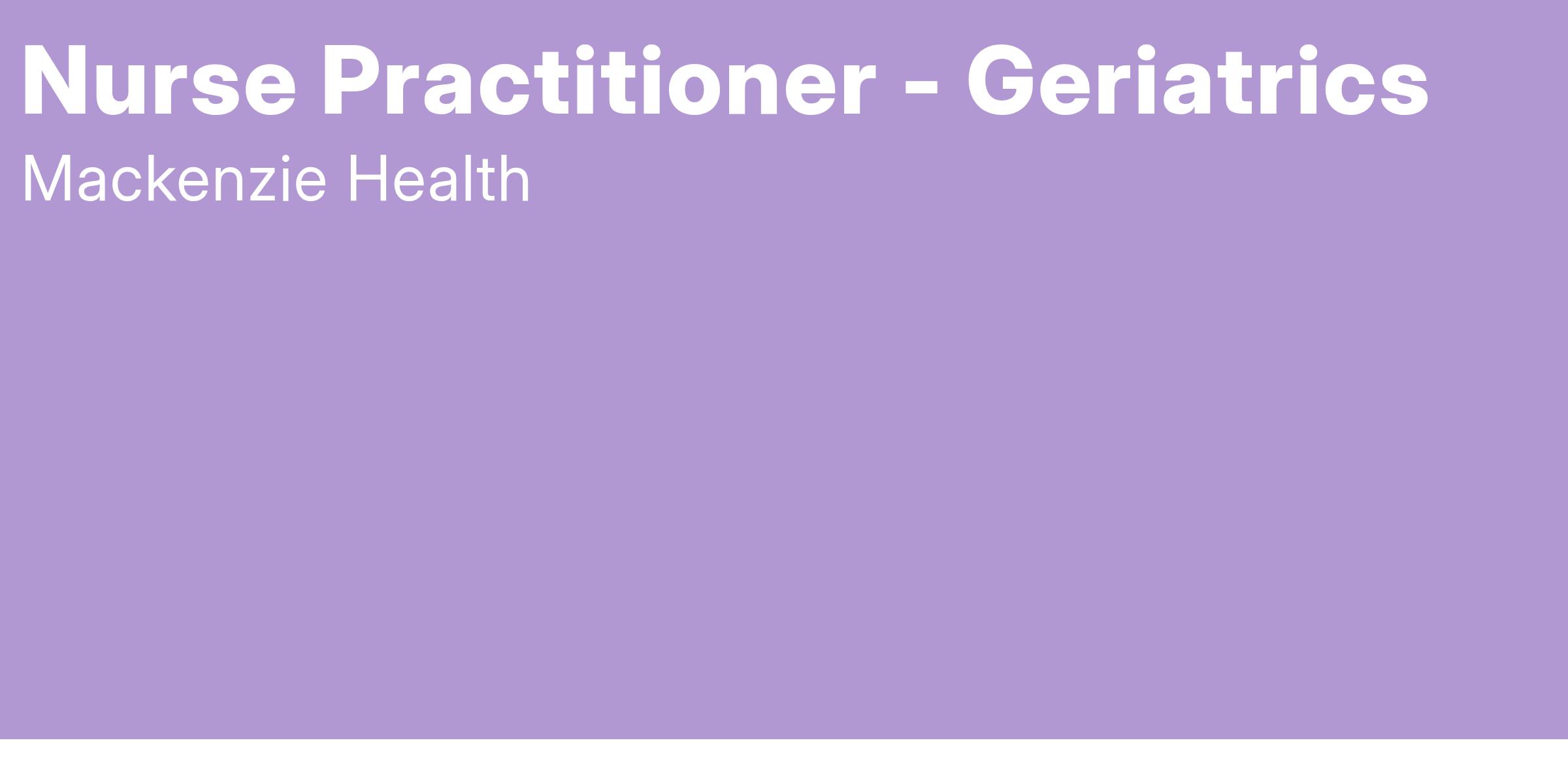 The Nurse Practitioner (NP) as an autonomous health professional with advanced education provides essential health services grounded in professional, ethical and legal standards. The Geriatric Nurse Practitioner integrates in-depth knowledge of advanced nursing practice and theory, health management, health promotion, disease/injury prevention, and other relevant biomedical and psychosocial theories to provide comprehensive health services, with a focus on specialized geriatric assessments. The Nurse Practitioner works in collaboration with clients, the geriatricians and other health-care providers in the provision of high-quality patient-centered care. Works with diverse client populations and patient care functions, in a variety of contexts, across a multi-sited facility.