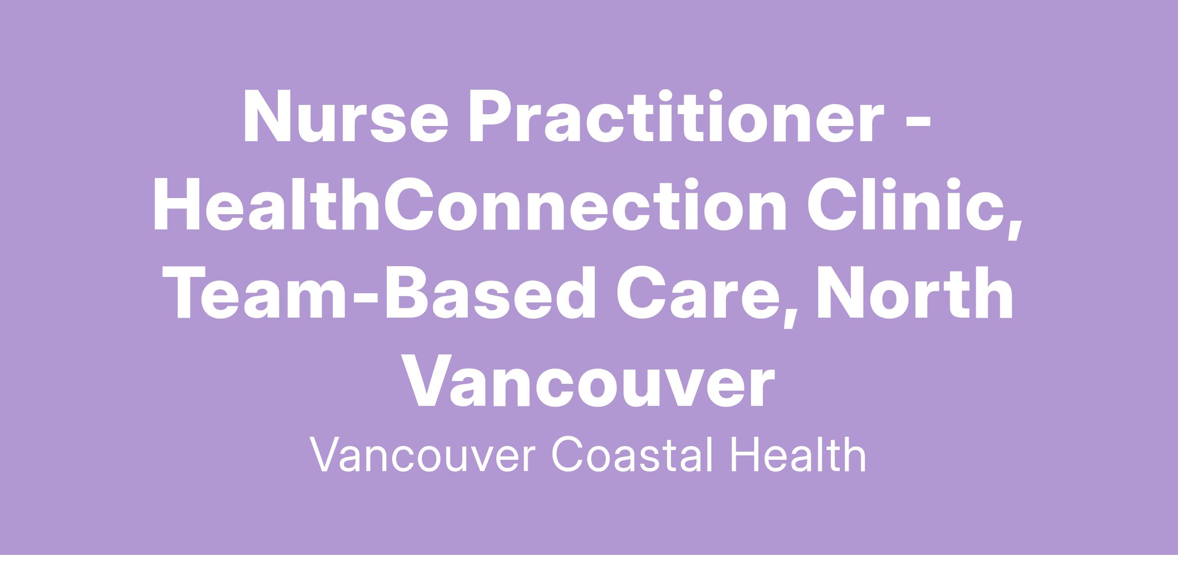 Vancouver Coastal Health is looking for a Nurse Practitioner to join the HealthConnection Clinic team. Apply today to join our team!