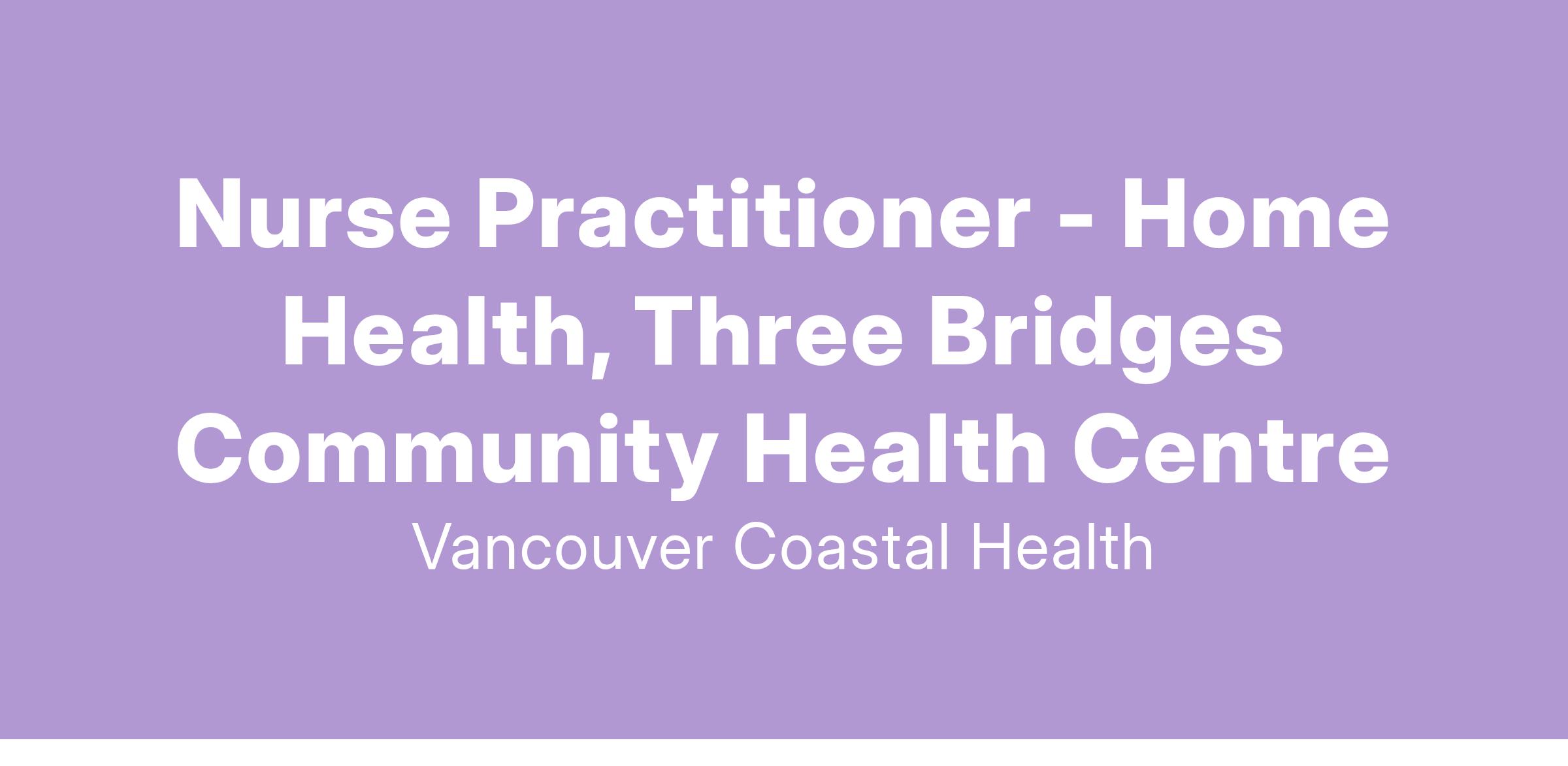 Come work as a Nurse Practitioner, CHA1 Home Health with Vancouver Coastal Health (VCH)!