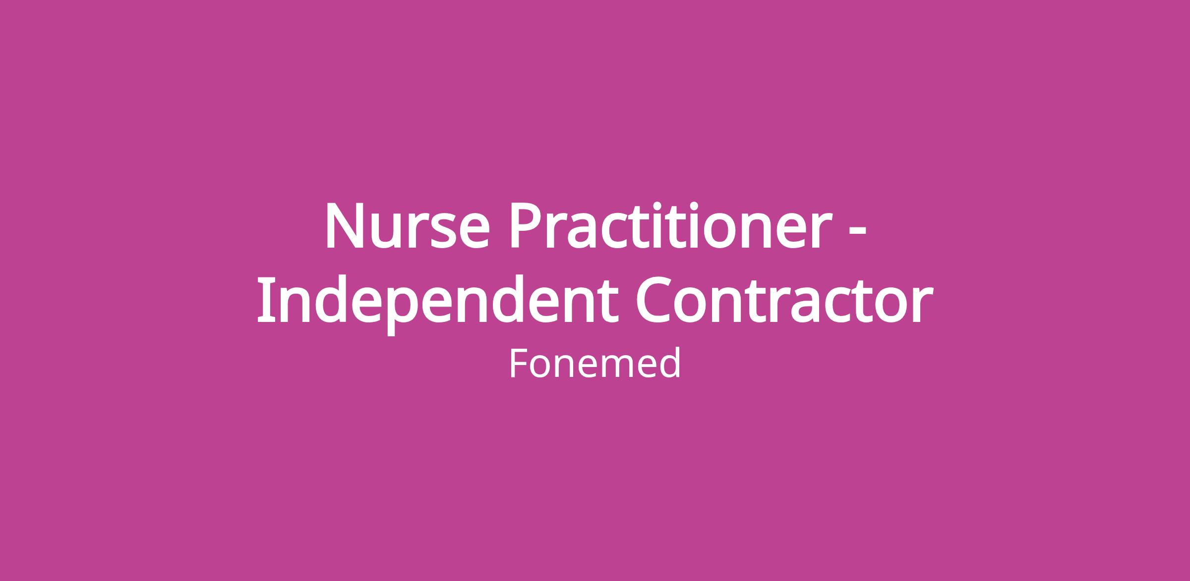Who this is for:Independent Nurse Practitioners who want to expand or establish their practice within a well-supported, professionally run clinical setting.This is an independent contractor opportunity, allowing you to maintain independence while benefiting from the support of a modern clinic.If you would be interested in bringing your practice to Fonemed Medical Clinic, submit your resume here or complete the form linked below today:Fonemed Medical Clinic Healthcare Practitioners - Independent Contractor Interest – Fill out form