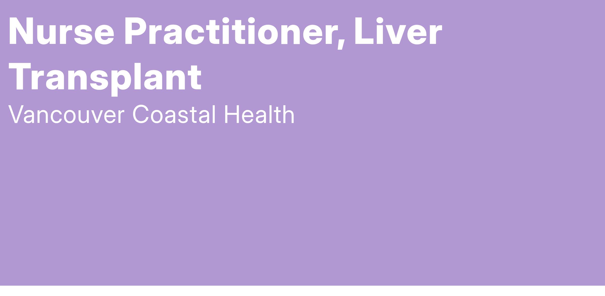 Vancouver Coastal Health is looking for a Nurse Practitioner (NP) to join the Solid Organ Transplant team at Vancouver General Hospital. Apply today to join our team!