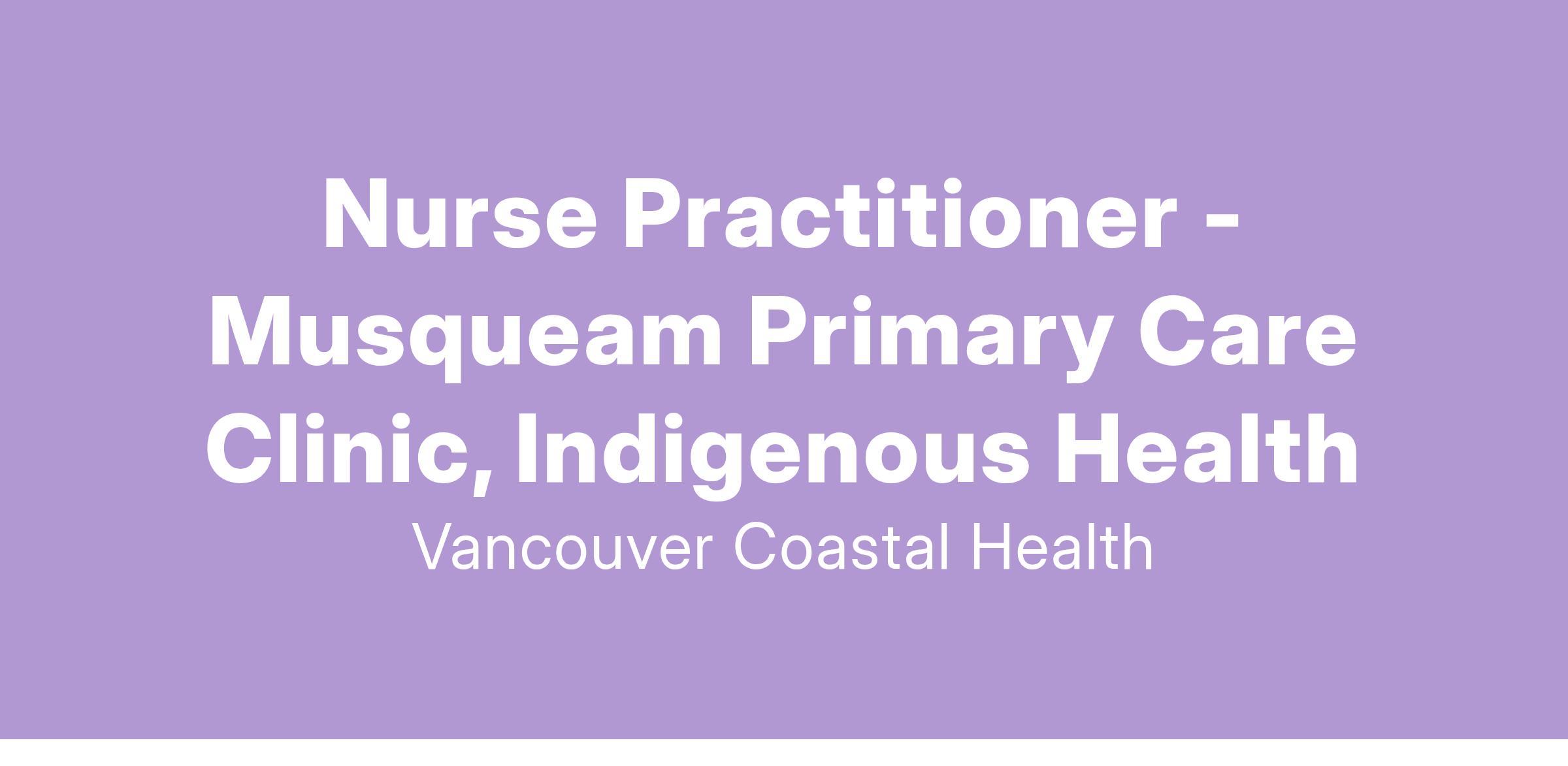Vancouver Coastal Health is looking for a Nurse Practitioner to join the Indigenous Health Team. Apply today to join our team!