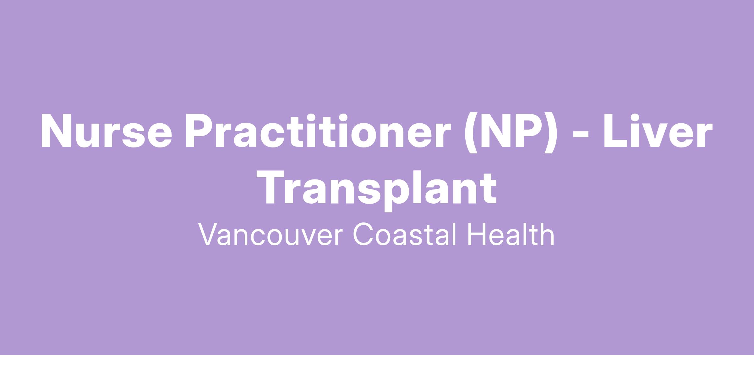 Vancouver Coastal Health is looking for a Nurse Practitioner (NP) to join the Solid Organ Transplant team at Vancouver General Hospital. Apply today to join our team!