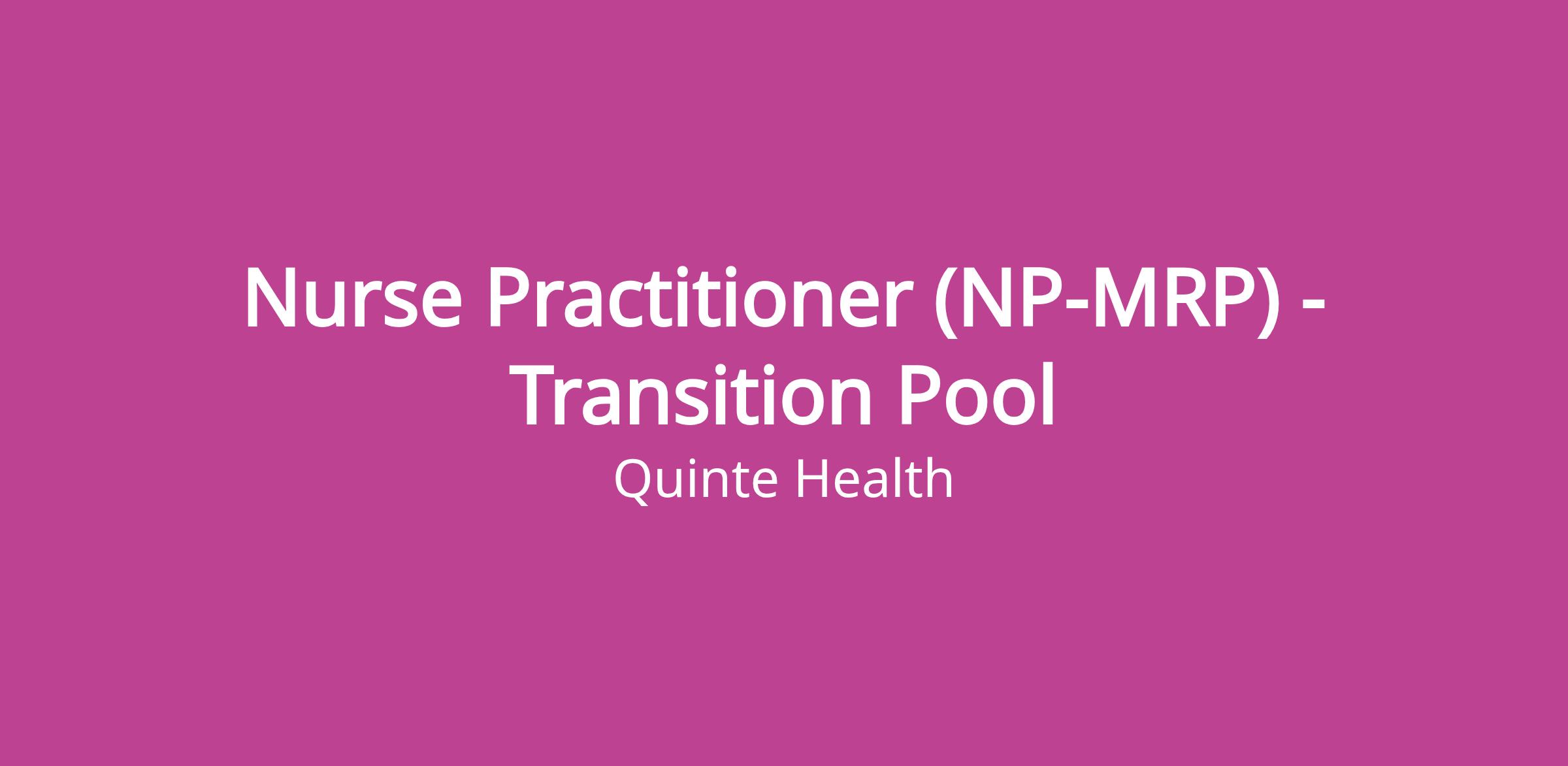 Nurse Practitioner (NP) – Most Responsible Provider (MRP) Role at Quinte Health