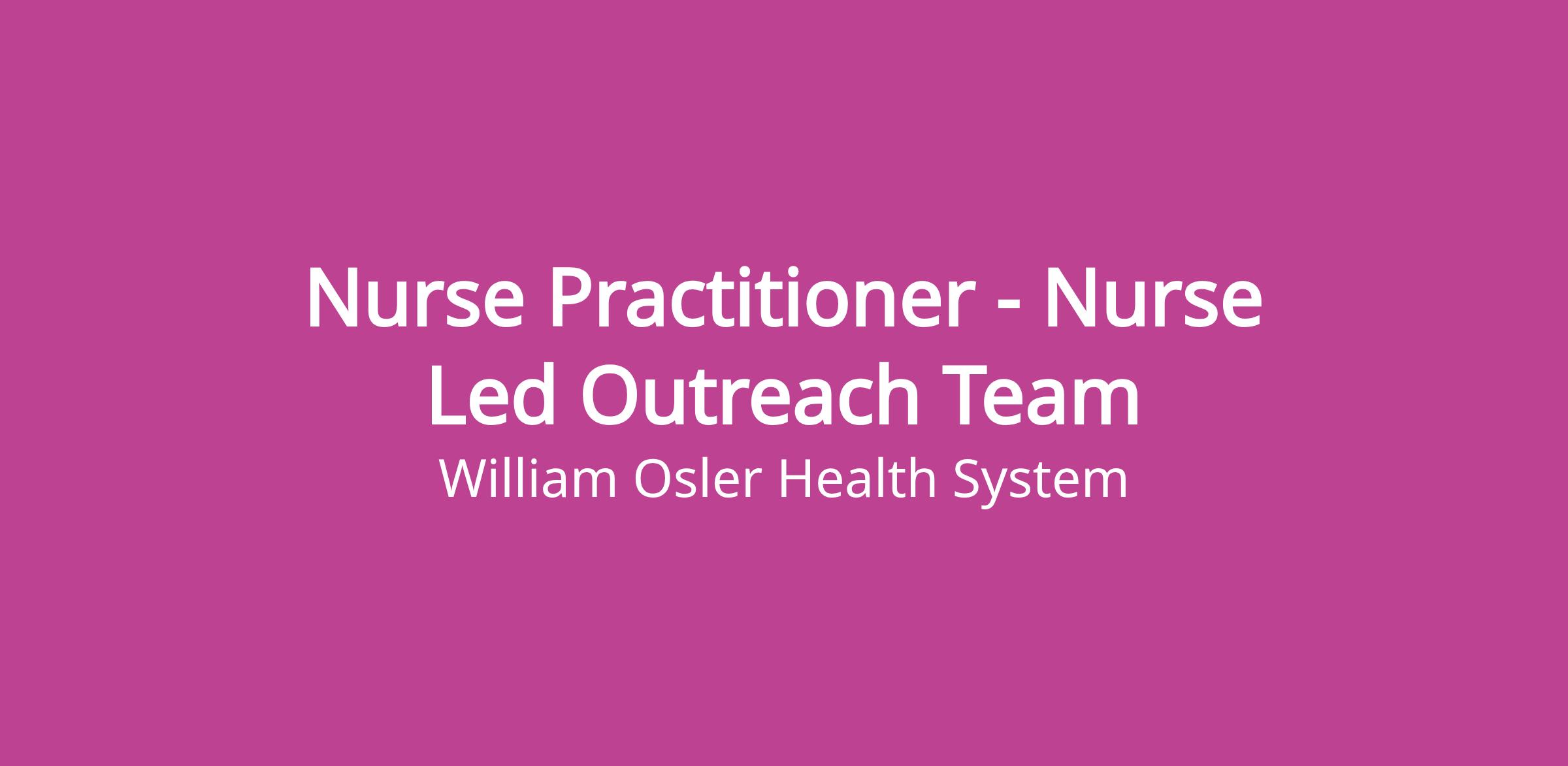 - Develop strong relationships with various community partners and throughout Osler and may act as a resource and consultant to individuals and groups within the professional community and other hospitals/agencies