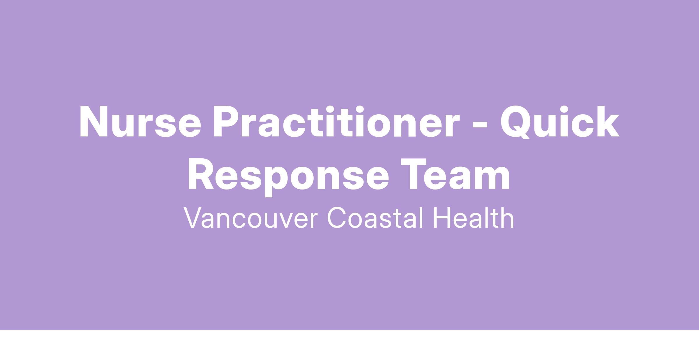 Nurse Practitioner Opportunity at Vancouver Coastal Health – Join Our Quick Response Team!
