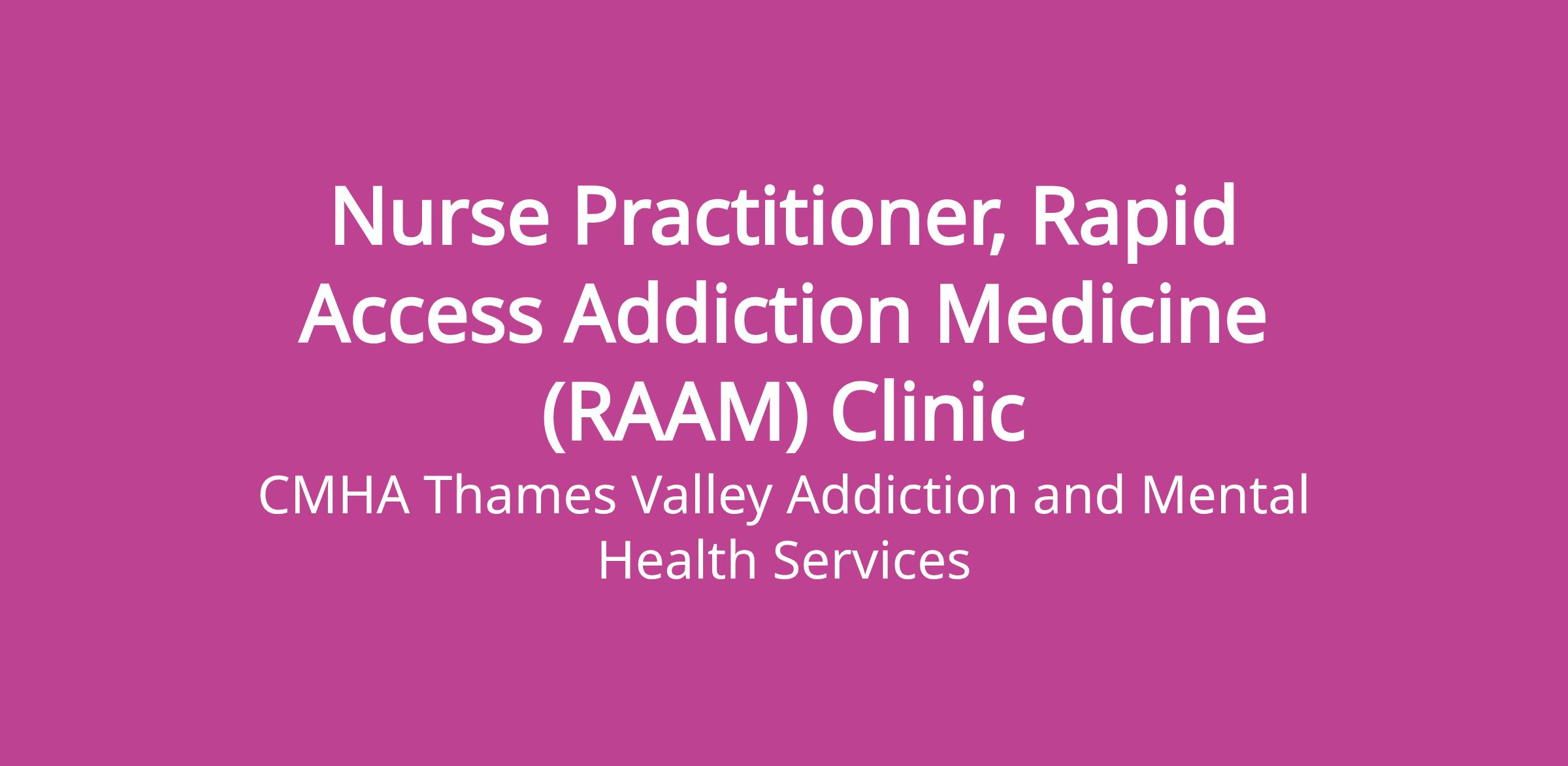 Nurse Practitioner, Rapid Access Addiction Medicine (RAAM) Clinic