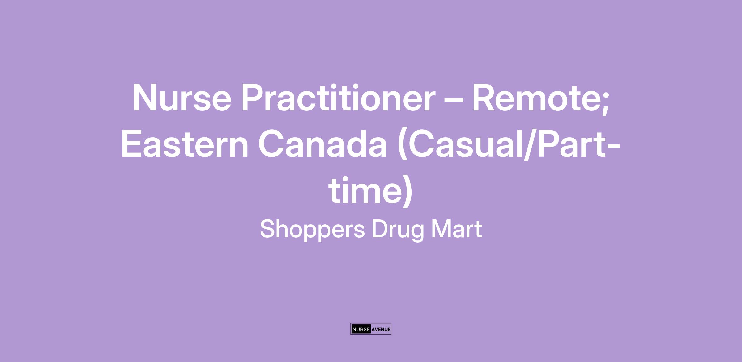 Nurse Practitioner – Remote; Eastern Canada (Casual/Part-time)