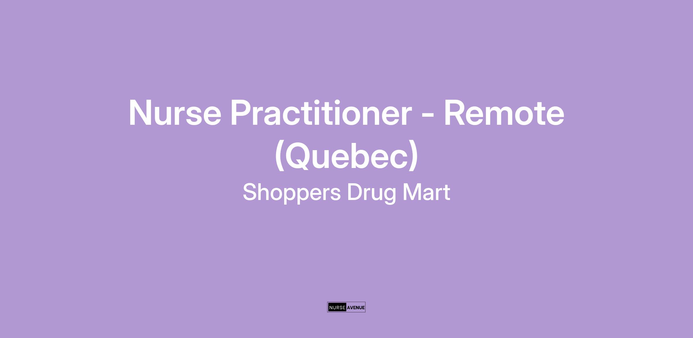 Nurse Practitioner – Remote; Currently licensed in Quebec