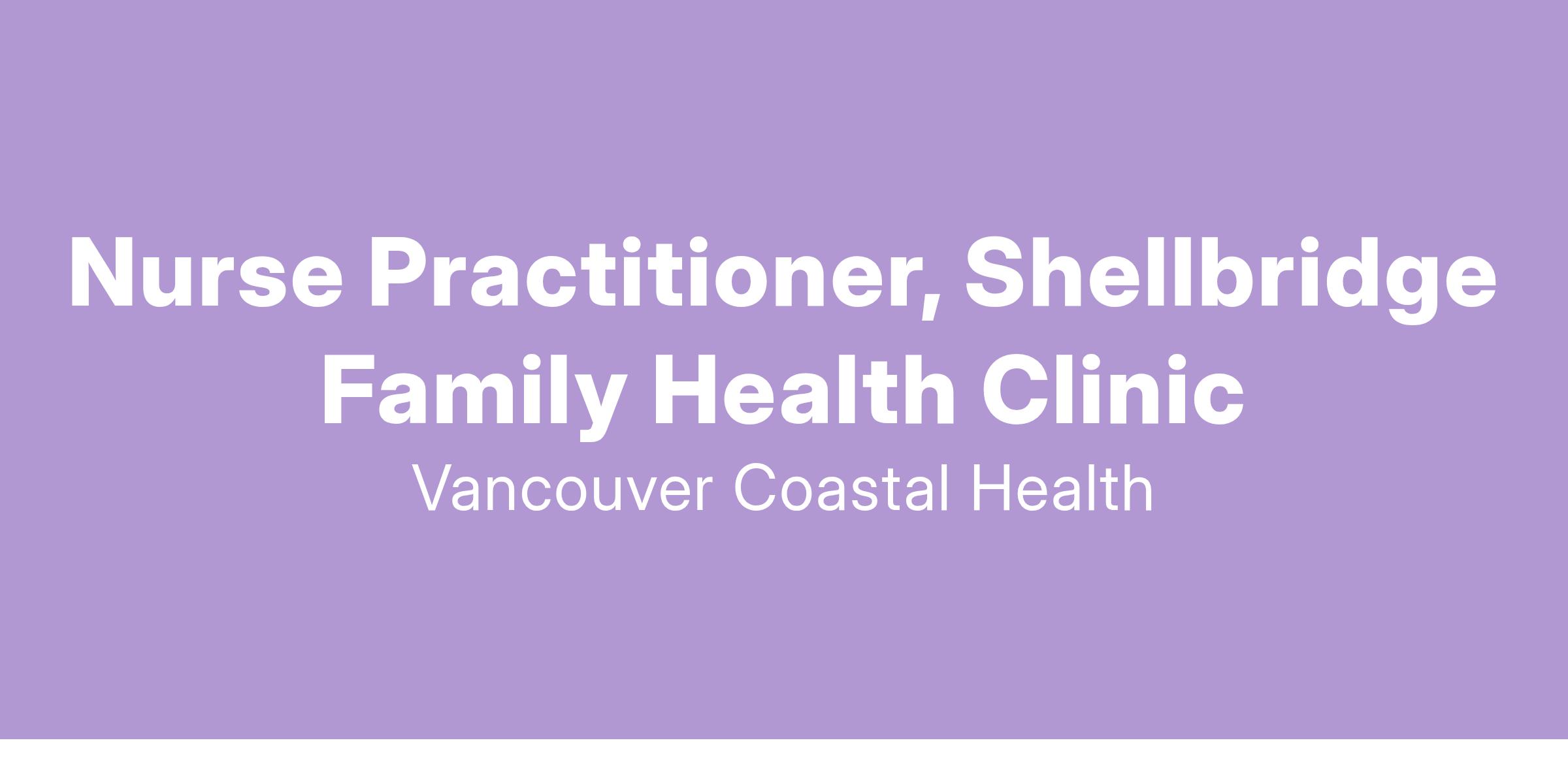 We are recruiting Nurse Practitioners for primary care positions at Shellbridge Family Health Clinic in Richmond. NPs will be attaching patients to longitudinal care as the Most Responsible Provider (MRP) in a comprehensive team-based care clinic that will cover the full spectrum of primary care/family medicine including prevention, maternity, acute illness, palliative care, chronic disease, and mental health and substance use, over the lifetime of the patient. NPs and their patients will be supported by an interdisciplinary team. Depending on community needs, this will include a mix of family physicians, RNs, social workers, dietitians, pharmacists, community support liaison workers, practice coaches and MOAs. NPs will be employees at VCH, reporting to the NP Director, and medical staff reporting to the VCH regional Department of NPs.