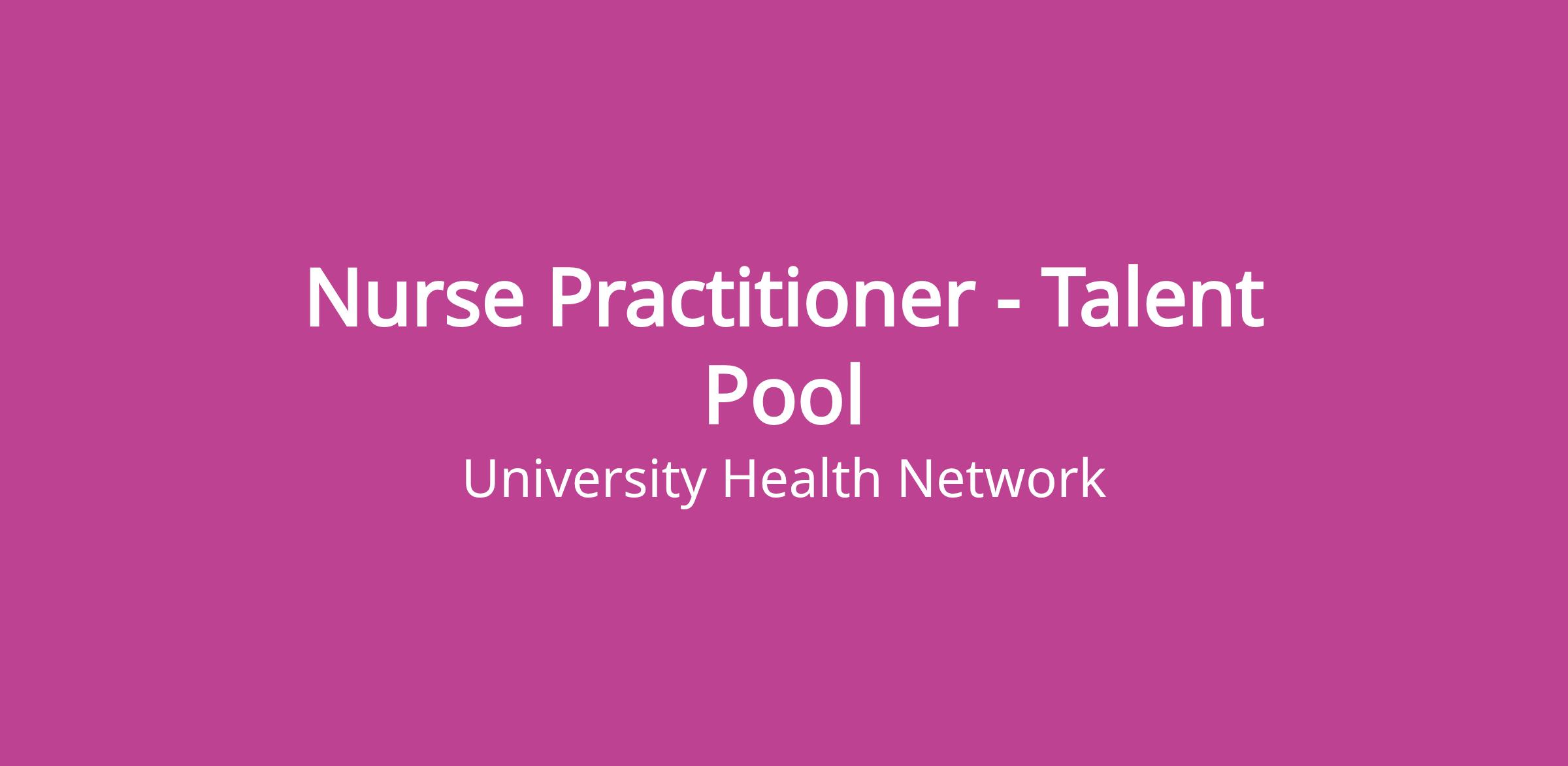 This is a Talent Pool posting for all Nurse Practitioner vacancies across Toronto General Hospital. We will be in touch if an opening becomes available that aligns with your credentials. Talent Pools are for external candidates only.